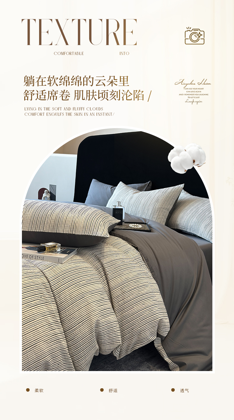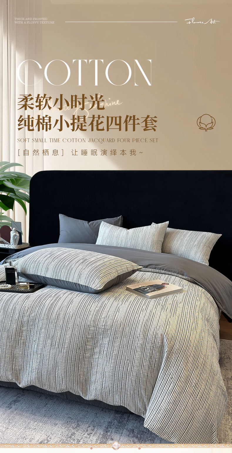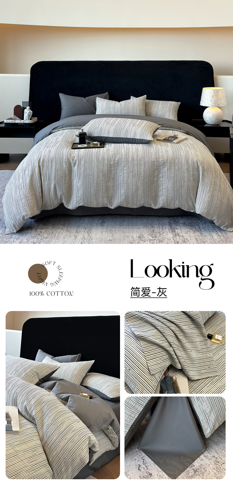 当前位置: 91家纺网 > 商品网购 > 床品套件 > 四件套 > 全棉普通四件套 > 家居1号2025新款13372全棉提花四件套--简爱系列 简爱-灰