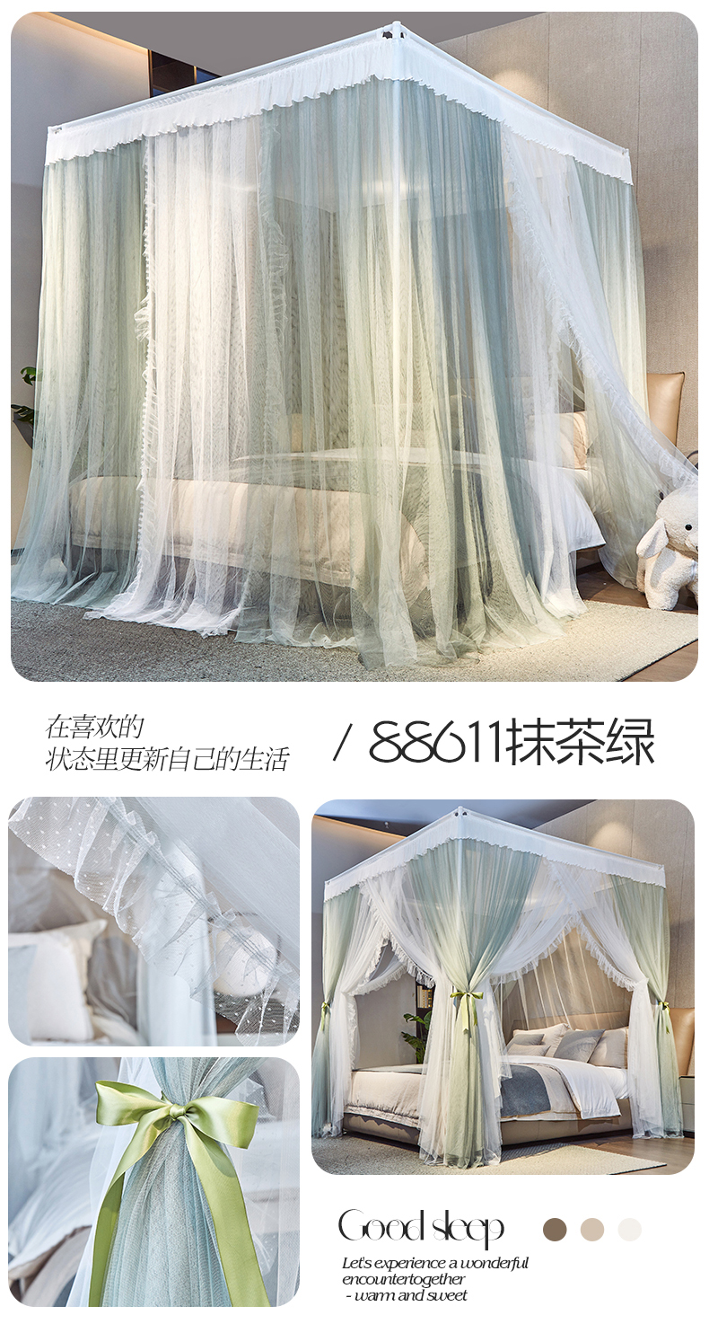 (总)夏彩 2025新款蕾丝U型防摔坐床蚊帐-88630,绿雅灰,藕玉色,香槟色