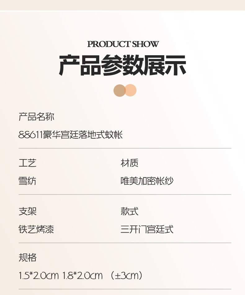商品名称:(总)夏彩 2025新款雪纺双层加柔加密外撑式25烤漆加粗宫廷蚊帐支架-88611