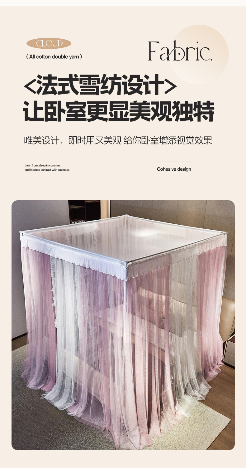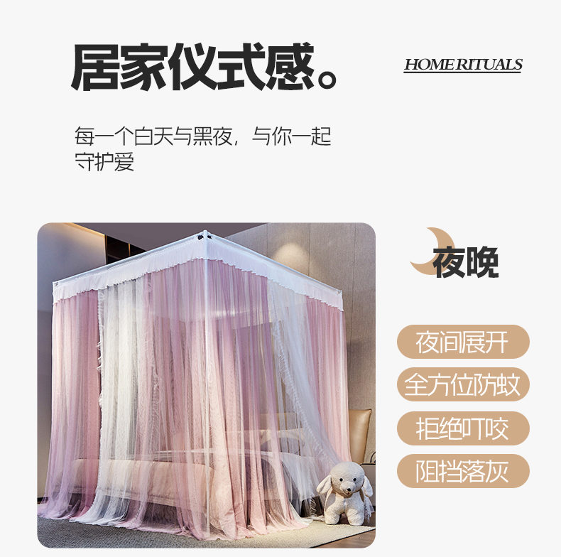(总)夏彩 2025新款浪漫唯美T+U床笠式坐床外穿防摔蚊帐-88610,886610冰海蓝,886610极光白,886610浅粉玉,886610浅水蓝,886610蔷薇粉,886610杏仁黄,886610雅士灰