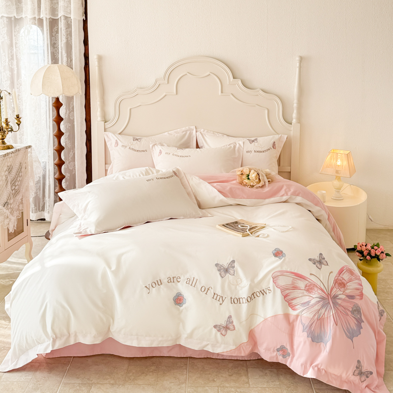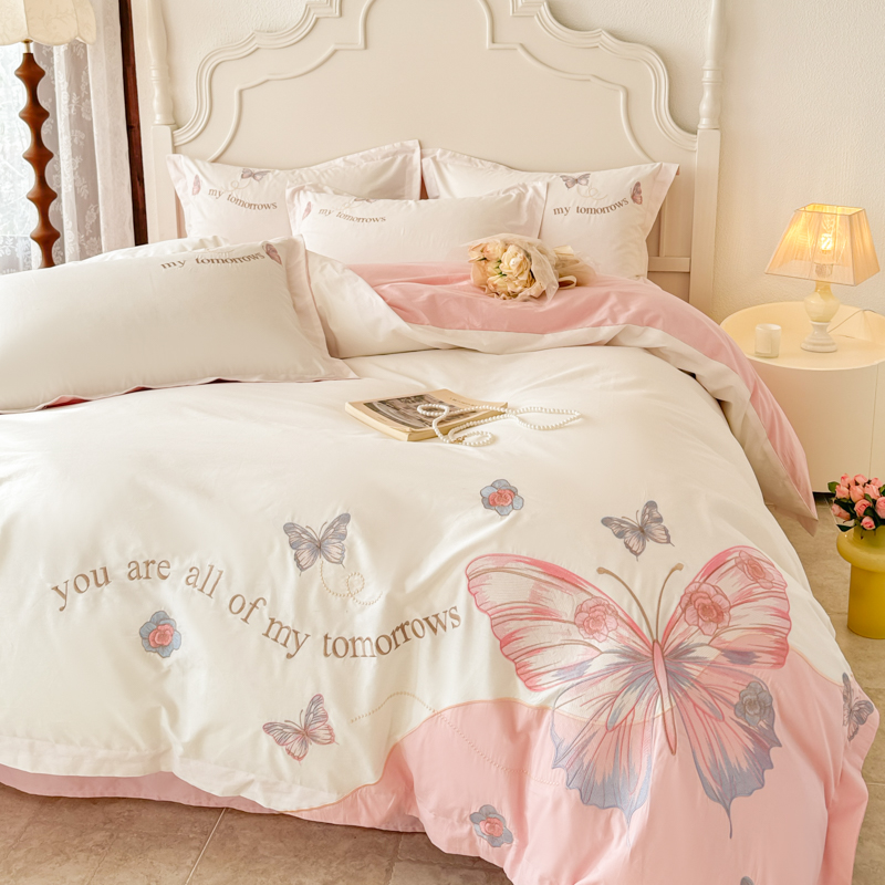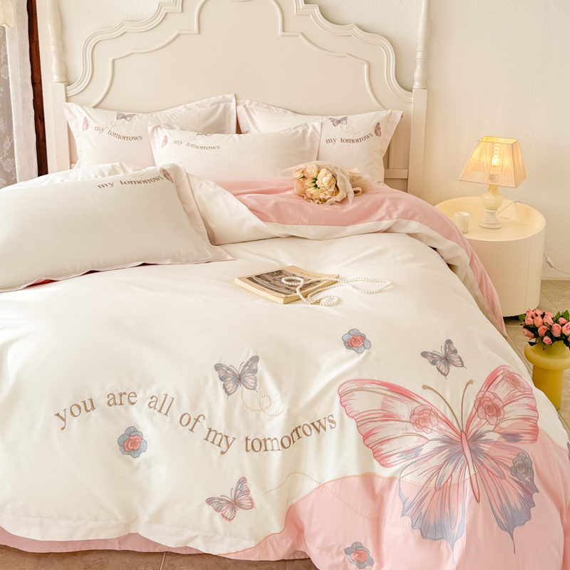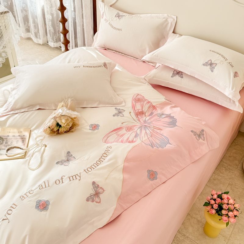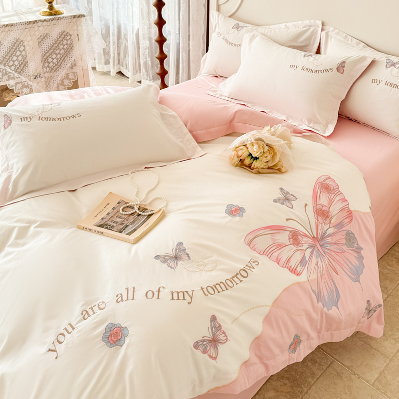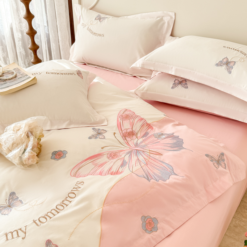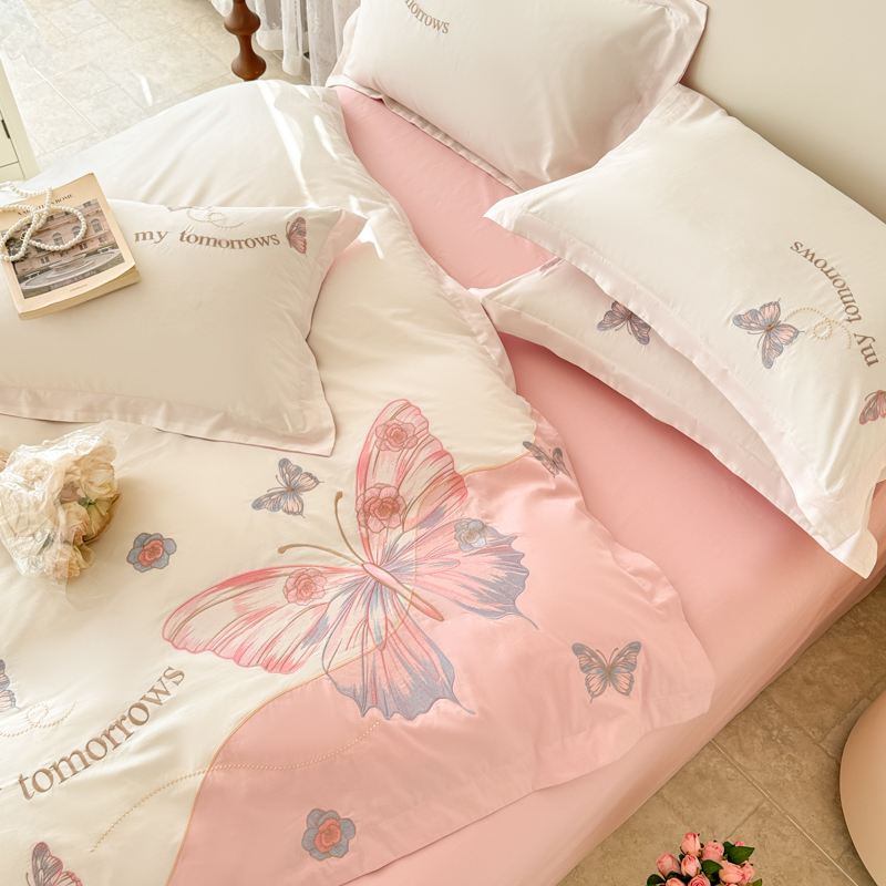 典曼家纺 2025新款A类刺绣四件套-梦幻蝶影 梦幻蝶影-白