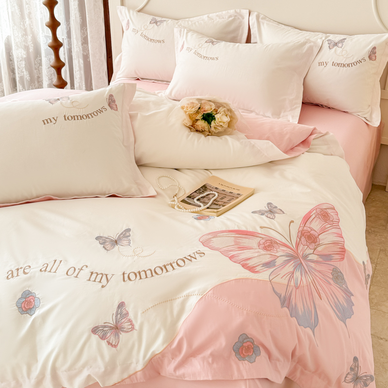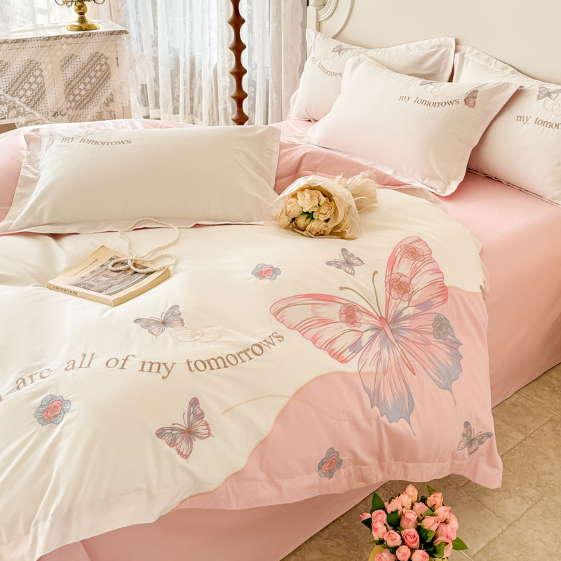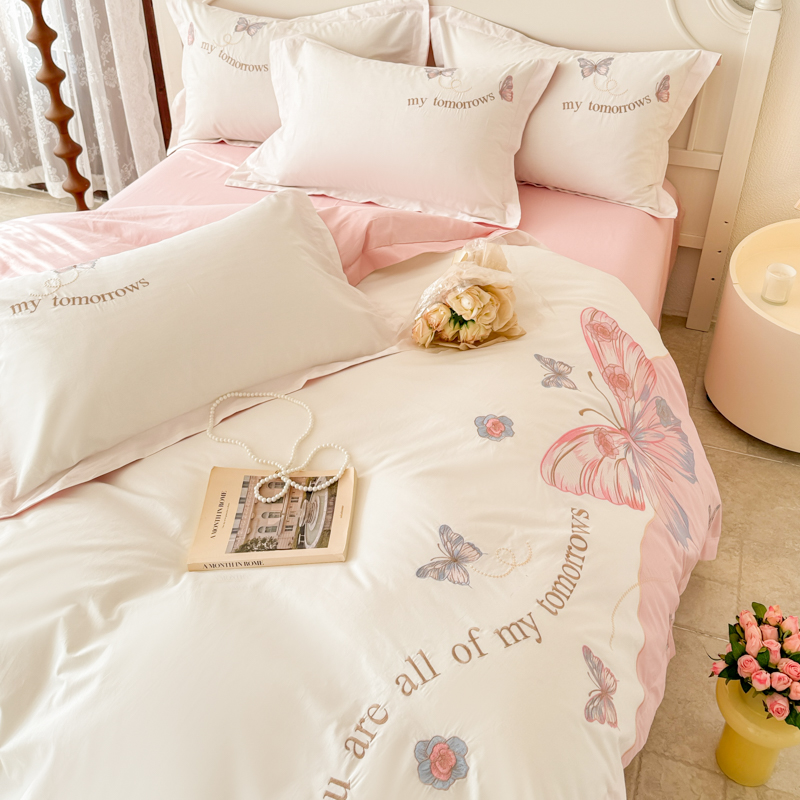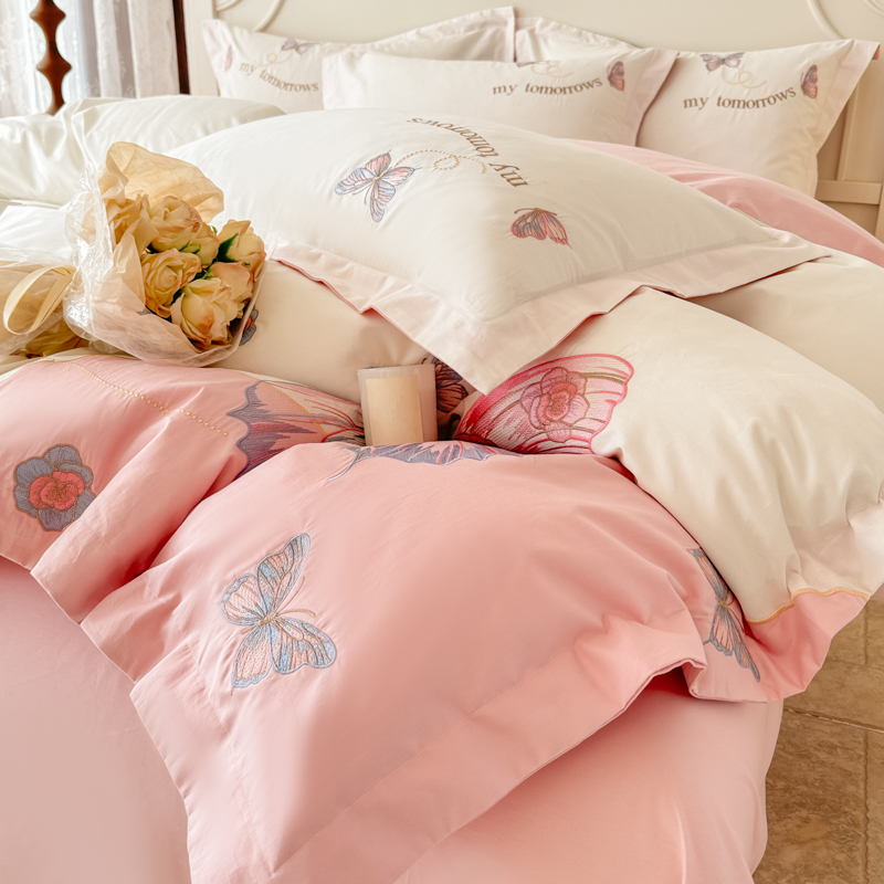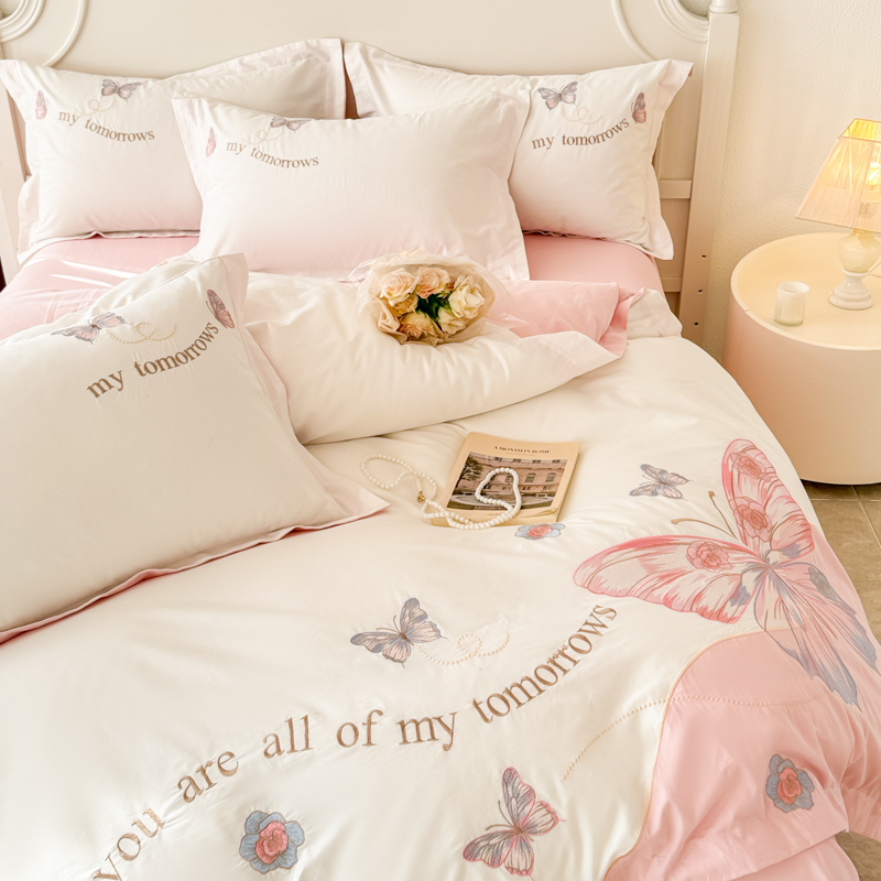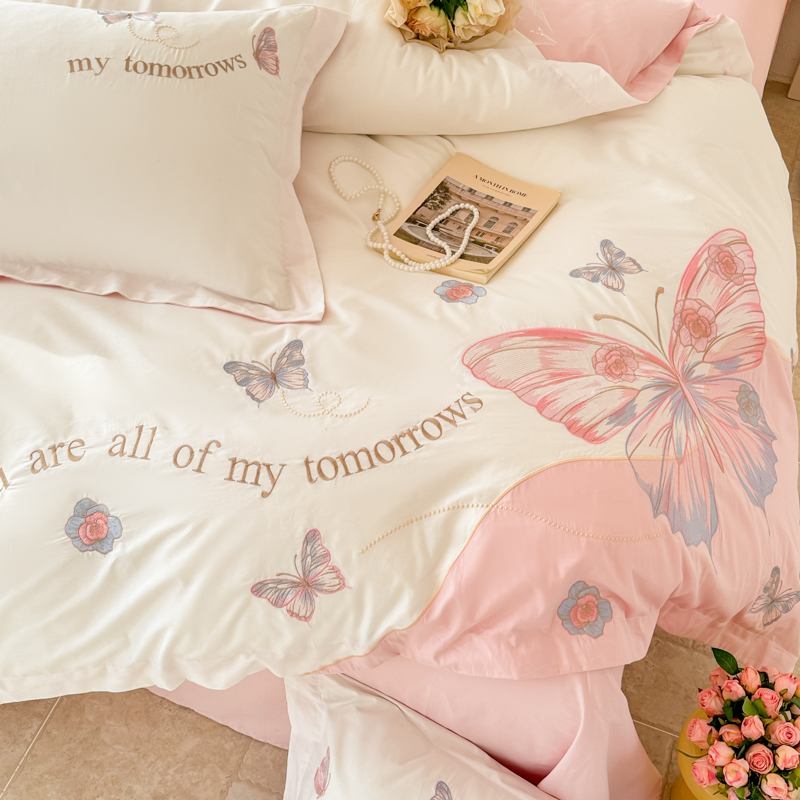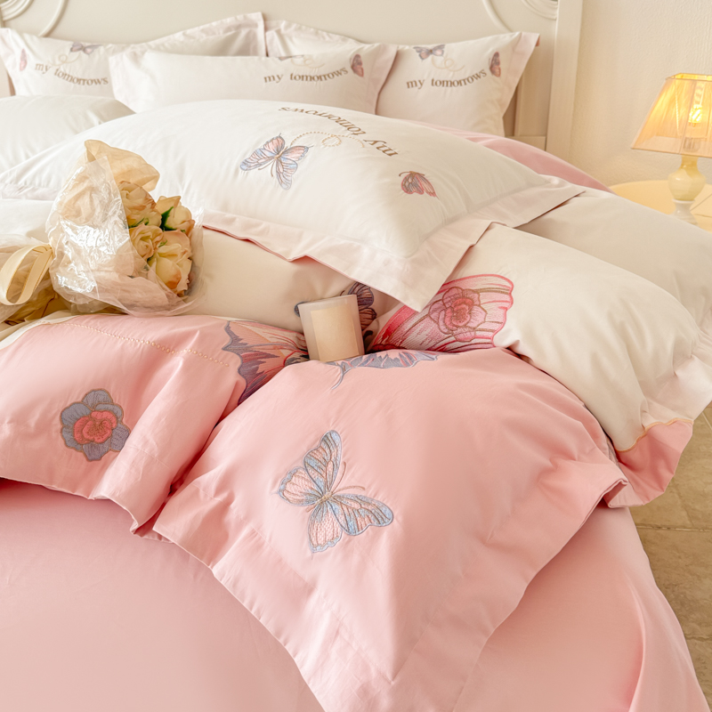 典曼家纺 2025新款A类刺绣四件套-梦幻蝶影 梦幻蝶影-白