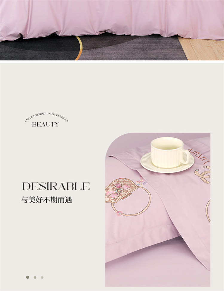 浩情国际婚庆供货中心 2026新款100支全棉高端刺绣中式风四件套--米尔顿系列 米尔顿-藕粉