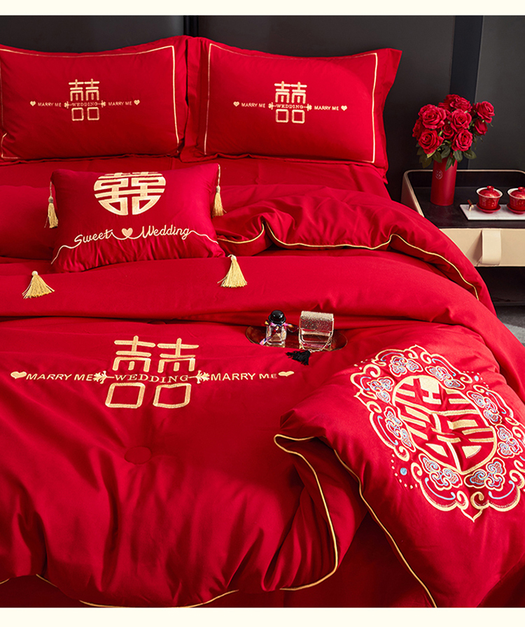 (总)甜咪咪婚庆 2025新款50支长绒棉全棉婚庆床单床盖四件套多件套刺绣工艺,洛可可,爱恋小熊,爱意久久,多子多福,花田喜事,节节高升,克拉恋人,浪漫情怀,怦然心动红,怦然心动玉,甜心玫瑰,温莎公主,伊甸园,醉红妆