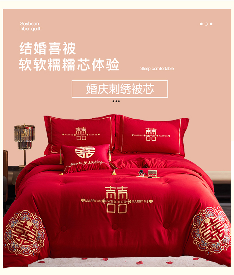 商品名称:甜咪咪婚庆 2025 新款居家婚庆刺绣结婚 春秋冬婚庆喜被 喜盈盈