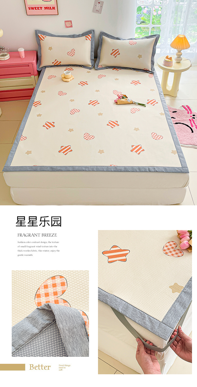 商品名称:席佬大 2025新款卡通印花冰藤软席席子凉席 星星乐园