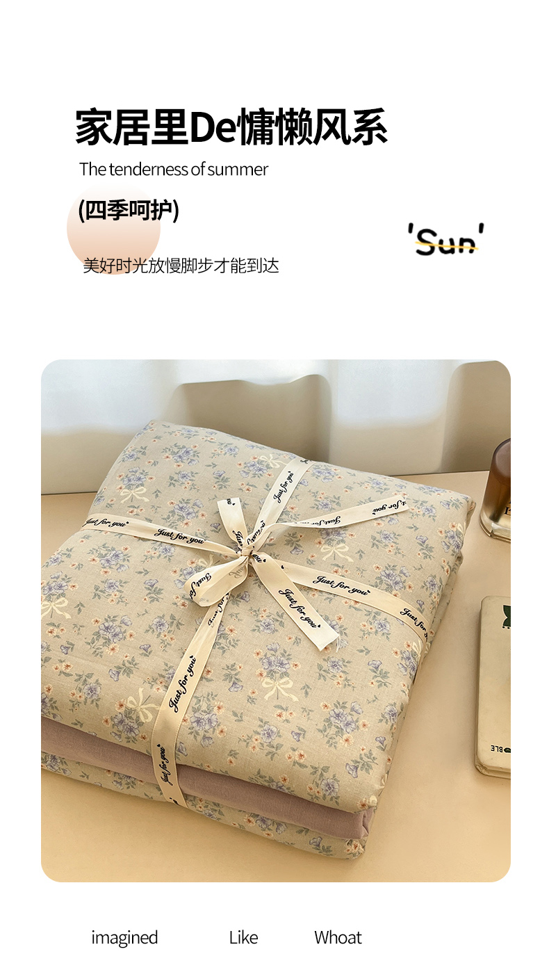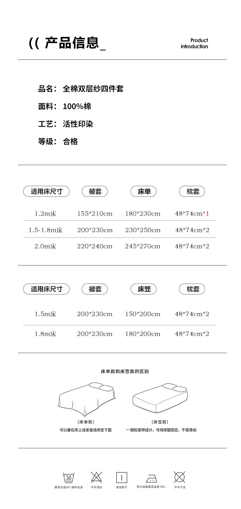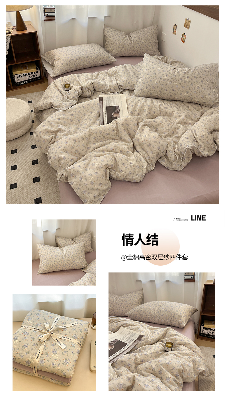 商品名称:捌月 2025新款A类全棉高密度双层纱四件套 情人结