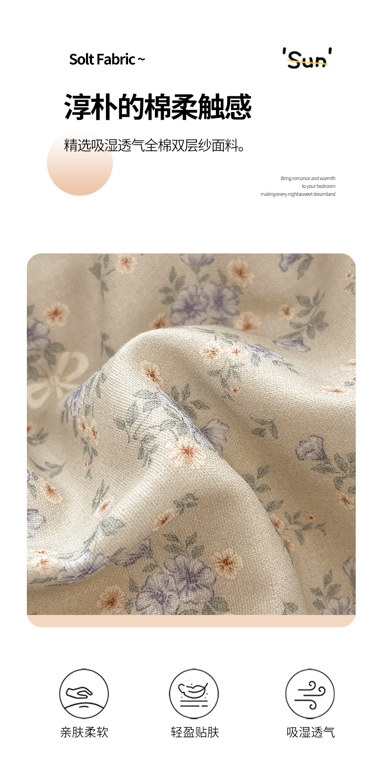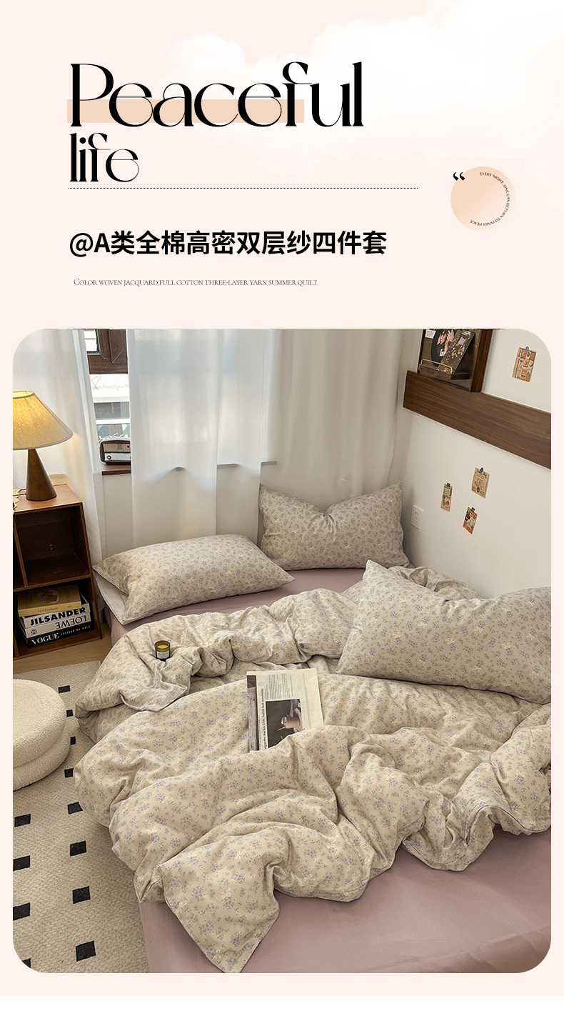 (总)捌月 2025新款A类全棉高密度双层纱四件套,爱心豆豆,扶摇,花满园,玫瑰故事,情人结,硕果,恬爱,婉婉,西西里,小美满,烟雨集,游园乐,悦色,绽妍