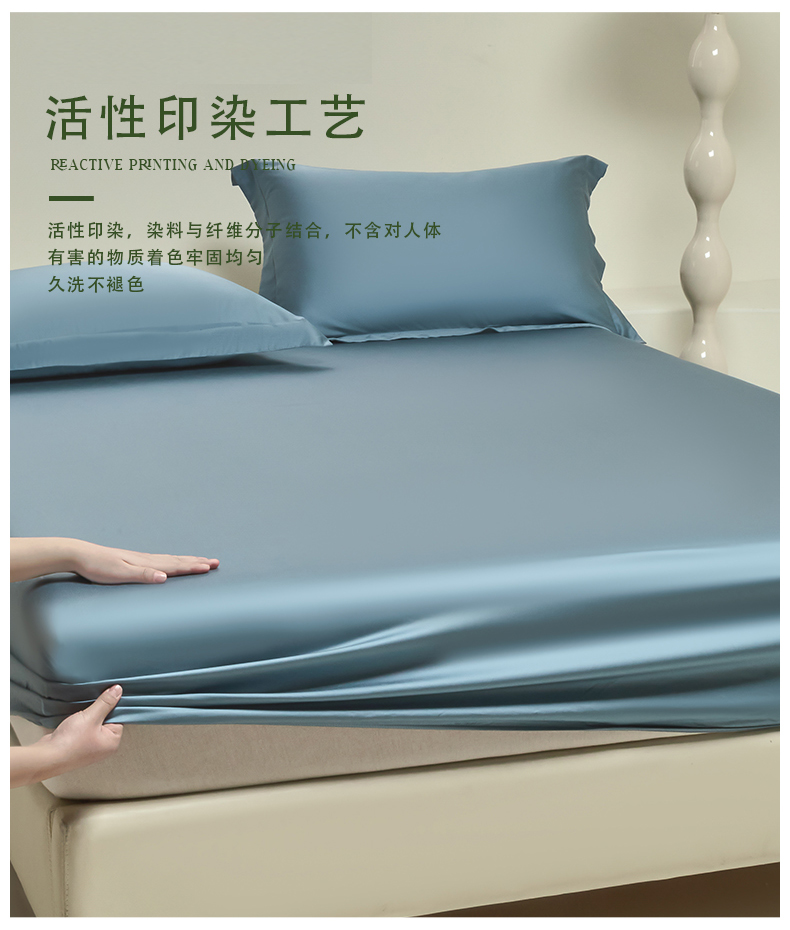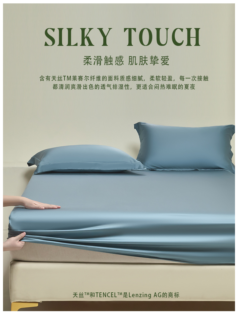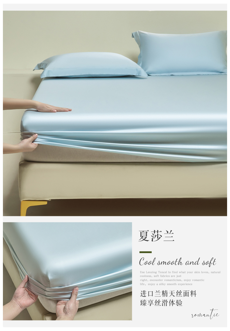 商品名称:618家纺 2025新款60S100支兰精天丝单品-单床笠 天丝海茵蓝