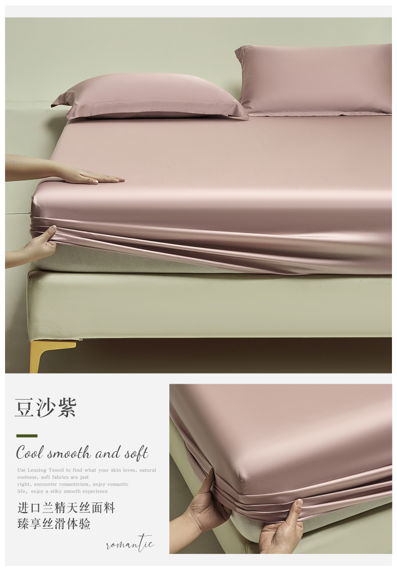(总)618家纺 2024新款100支兰精天丝单床笠,天丝豆沙紫,天丝海茵蓝,天丝蓝莲紫,天丝奶米杏,天丝俏佳人,天丝石墨绿,天丝夏莎兰,天丝香槟金,天丝雅士灰,天丝椰子灰,天丝银河灰,天丝樱花粉