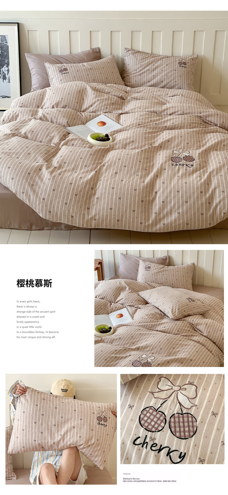 (总)圆岛家纺 2023秋冬新款少女心桃心樱桃毛巾绣牛奶绒四件套,桃心(淡紫),樱桃(玉粉)