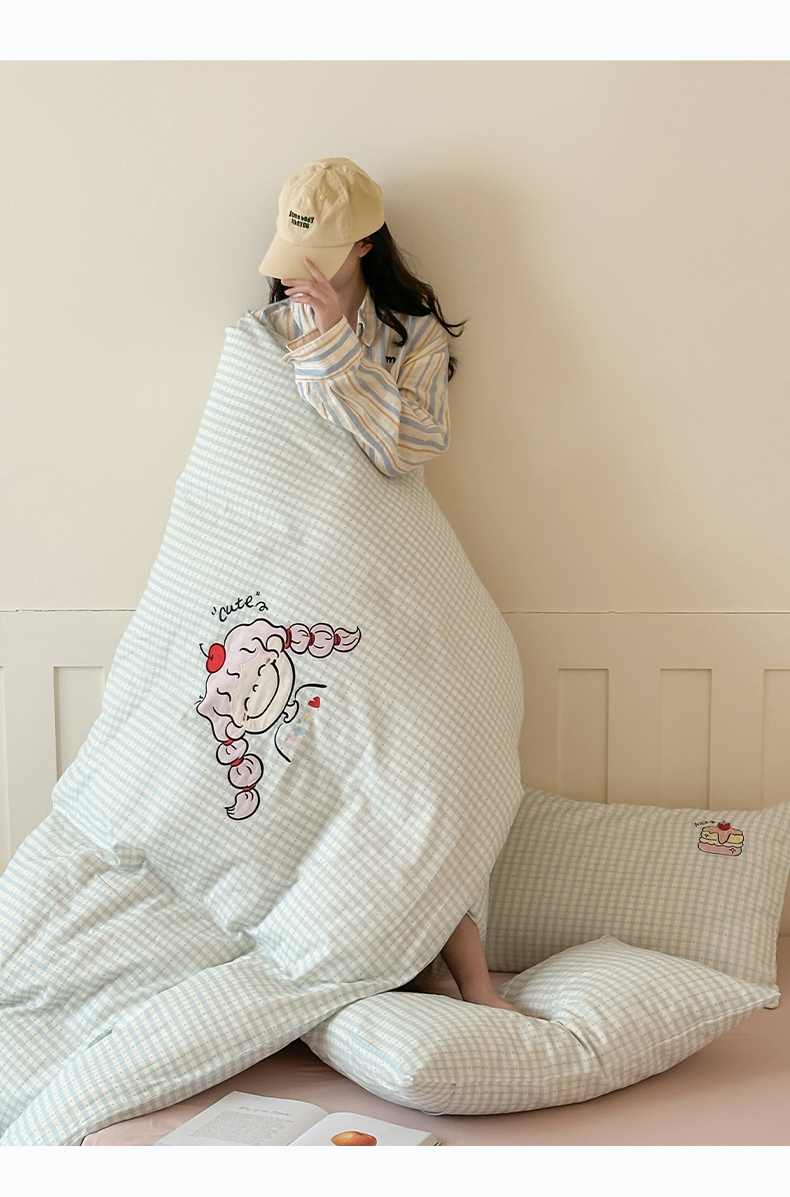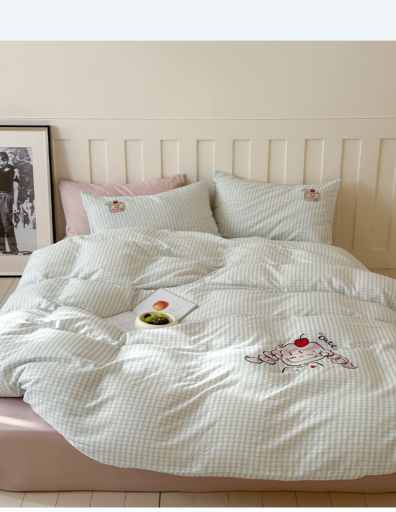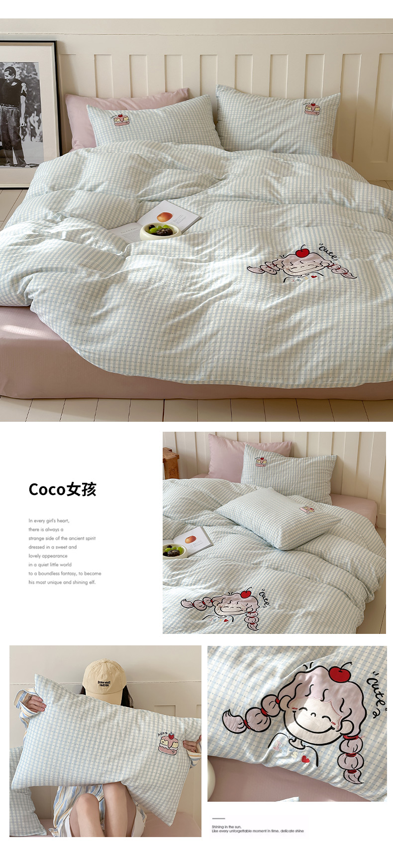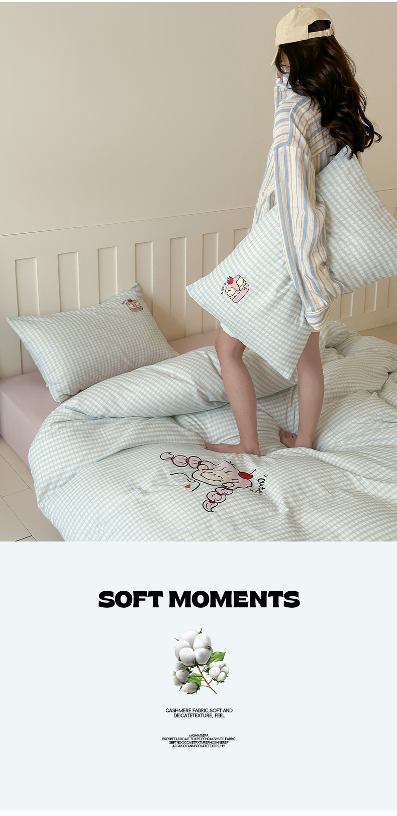 (总)圆岛家纺 2023冬季新款全棉加厚磨毛刺绣四件套-场景二,假日小象,猫咪日记