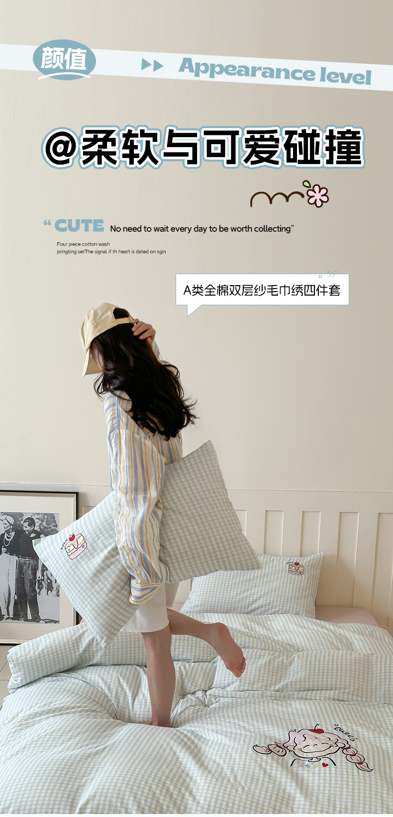 商品名称:(总)圆岛家纺 2025新款全棉双层纱贴布绣四件套