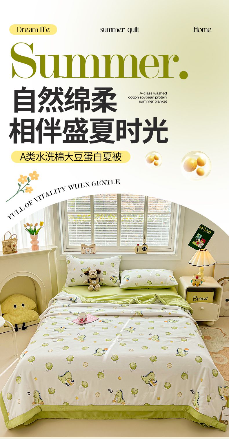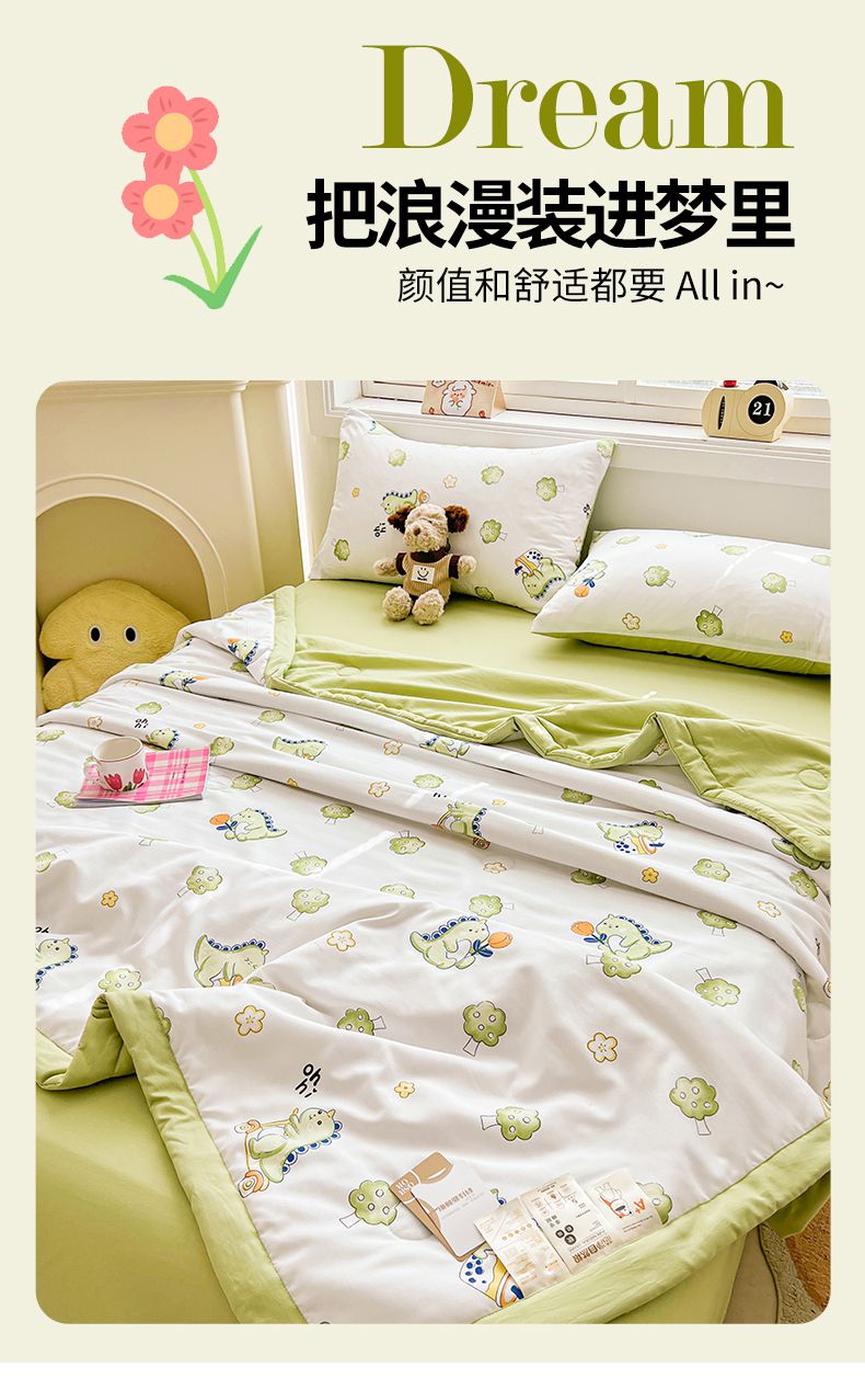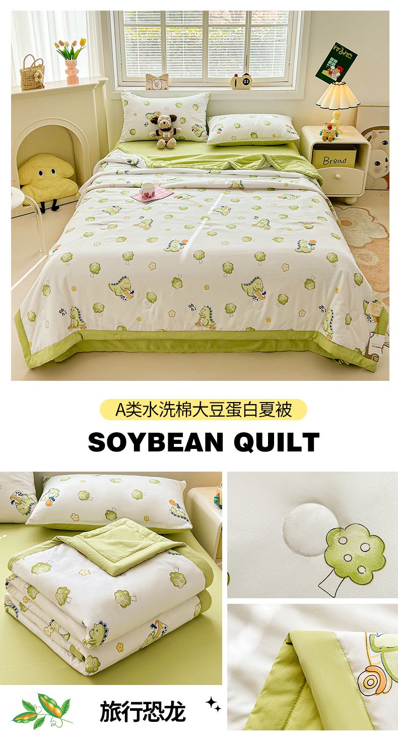 商品名称:秋泽家纺 2025春夏新款水洗棉双层纱大豆纤维夏被夏凉被空调被 旅行恐龙