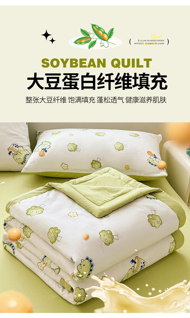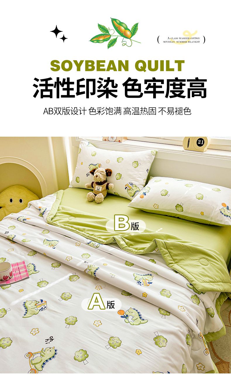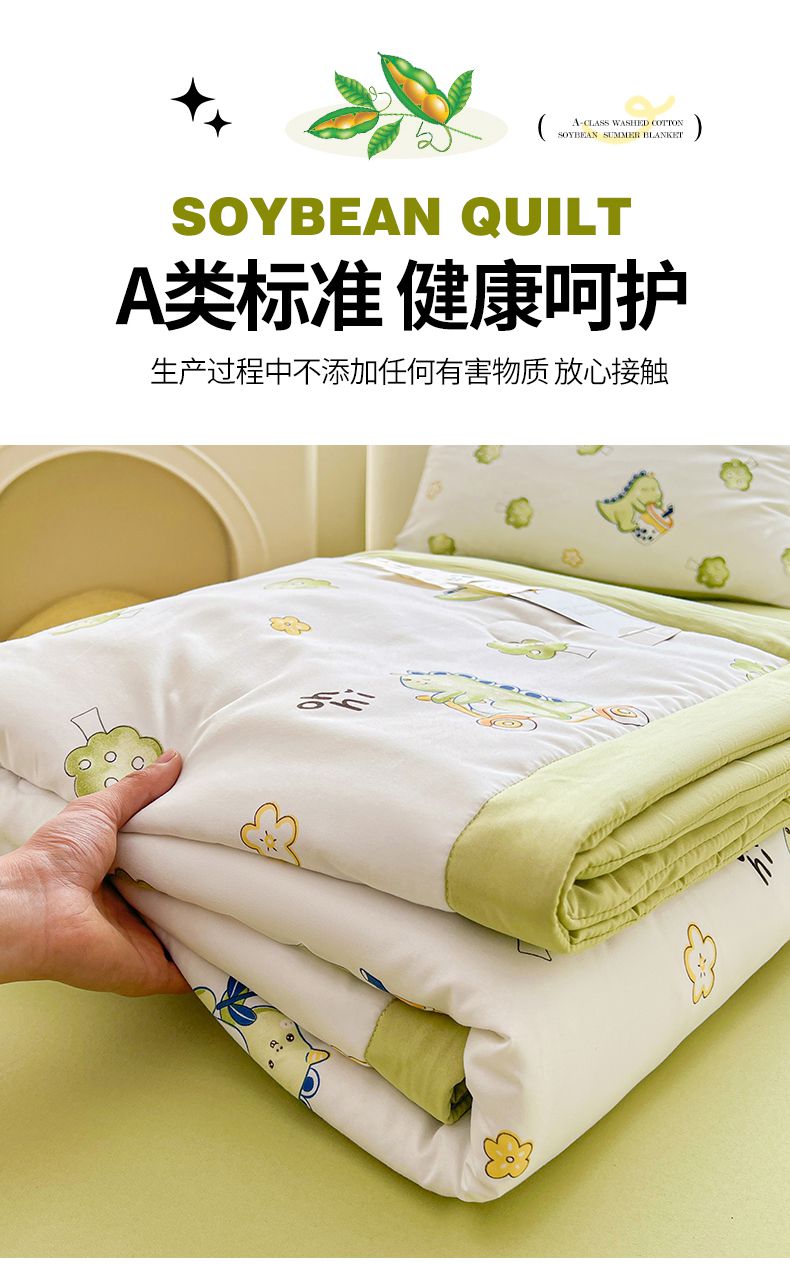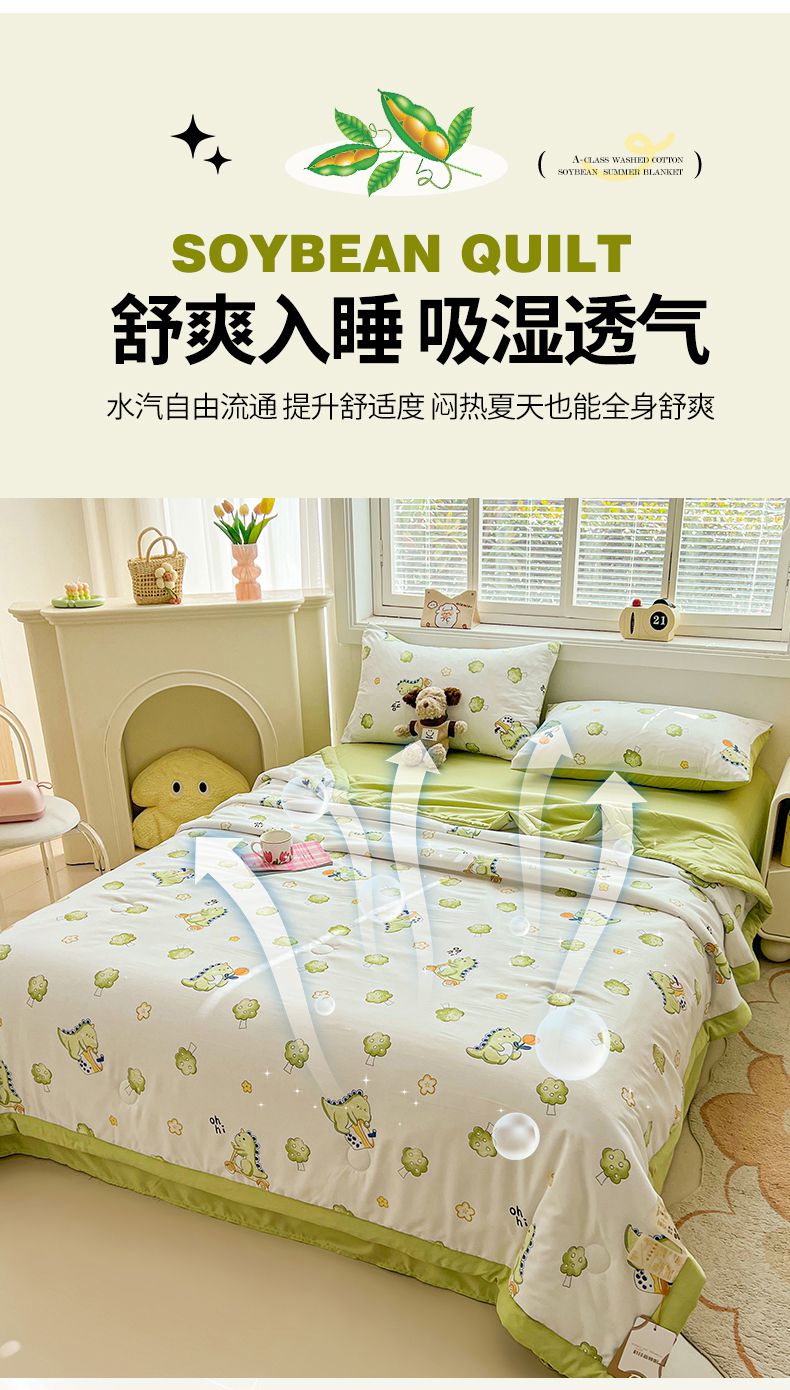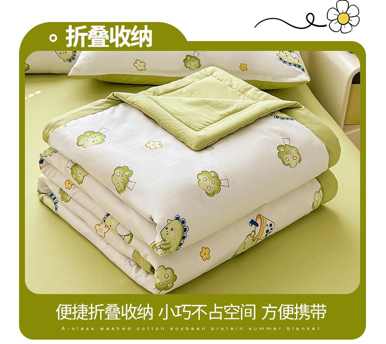 秋泽家纺 2025春夏新款水洗棉双层纱大豆纤维夏被夏凉被空调被 旅行恐龙