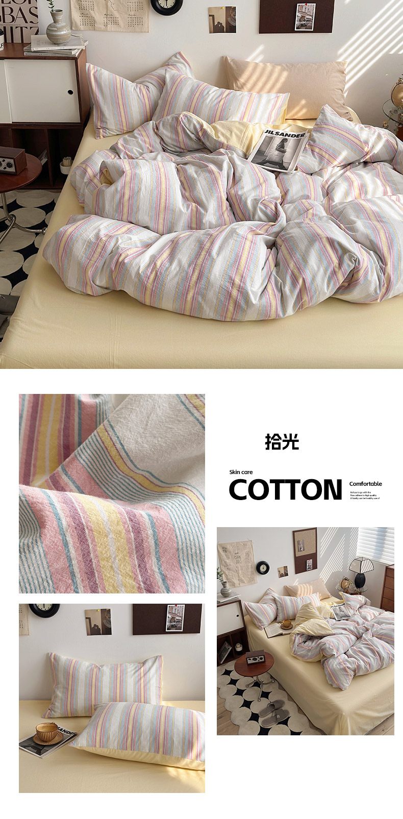 当前位置: 91家纺网 > 商品网购 > 床品套件 > 四件套 > 色织四件套 > 水洗的故事2025新款A类AB版全棉色织水洗棉四件套 南风