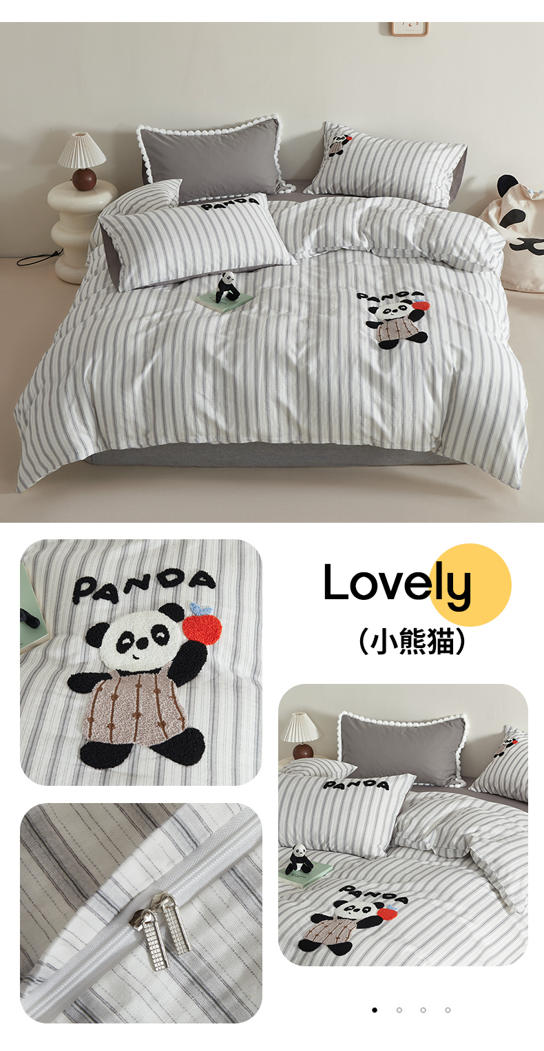 怡家居 2025新款全棉双层纱可爱卡通毛巾绣四件套 小熊猫