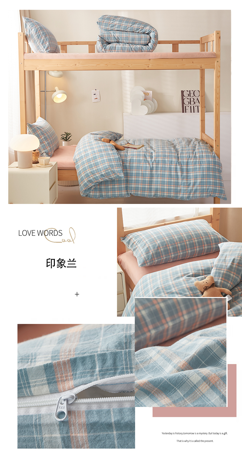 商品名称:水洗的故事 2025新款开学季色织水洗棉学生宿舍三件套 深灰素色