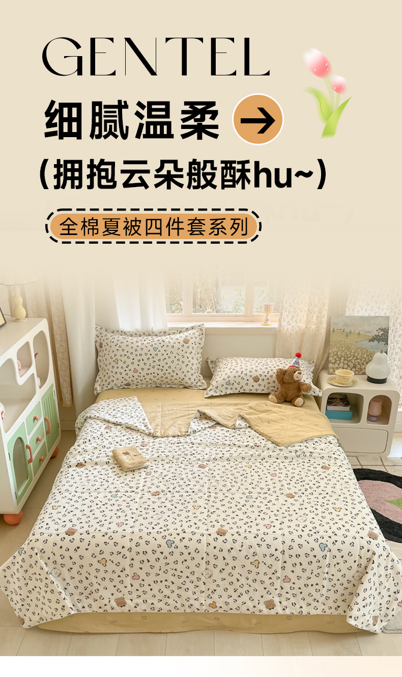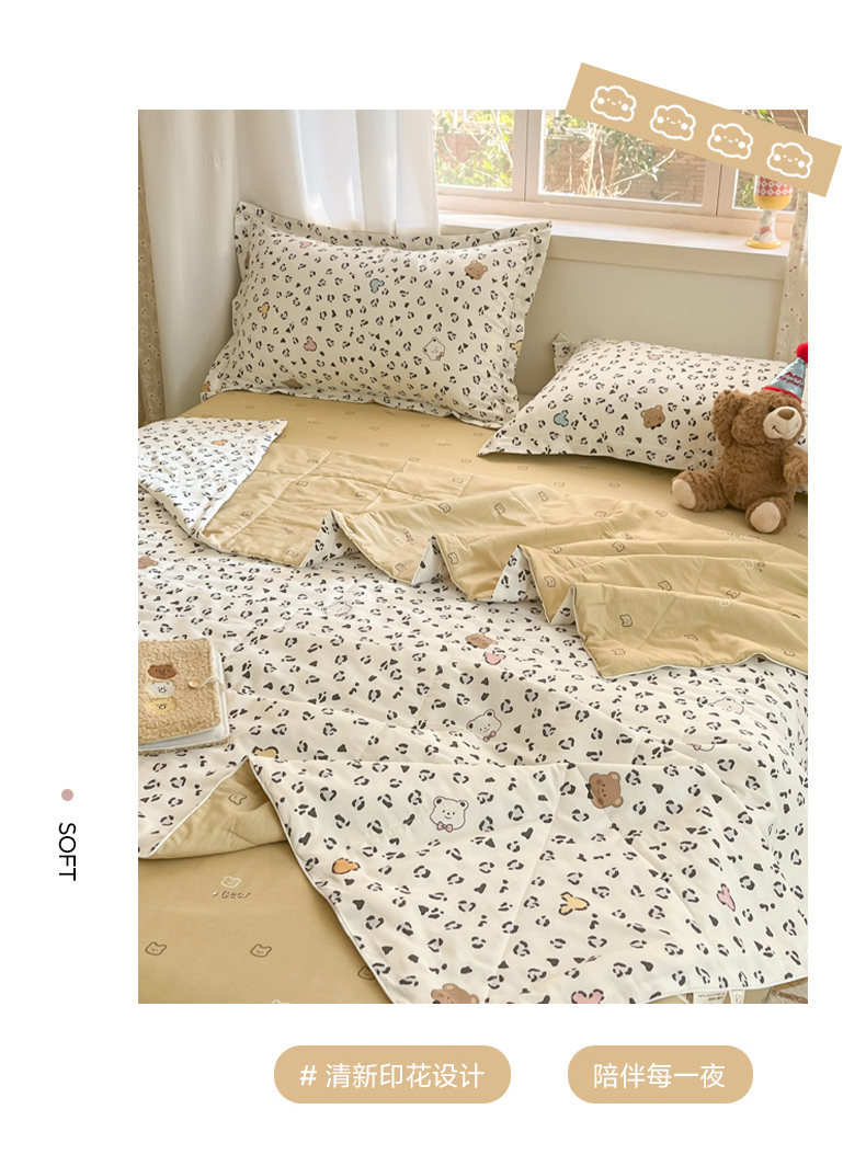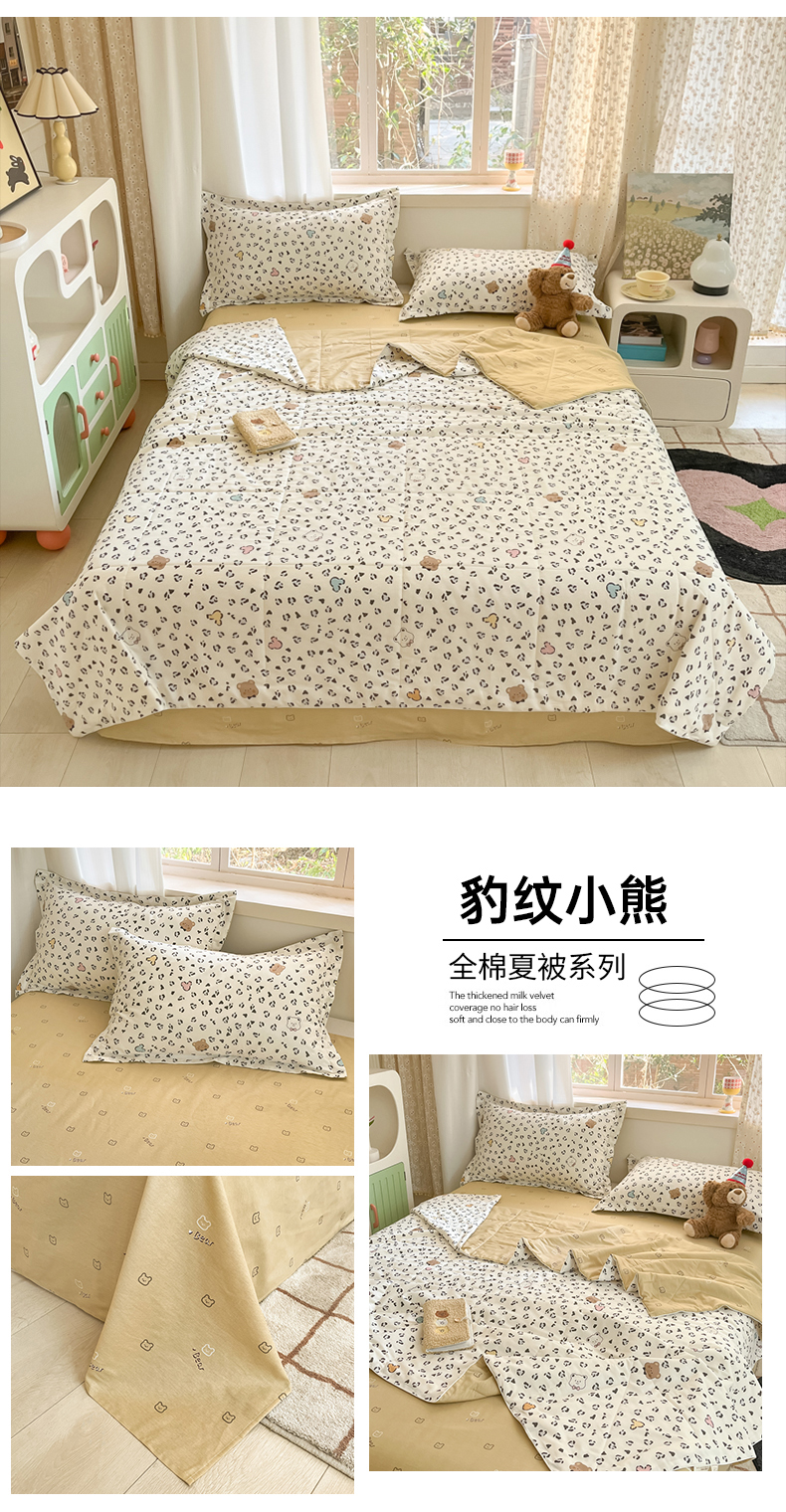 • 91家纺网 家纺一手货源 找家纺 帕拉美拉 2025新款全棉棉花夏被春秋被四件套豹纹小熊-全棉棉花