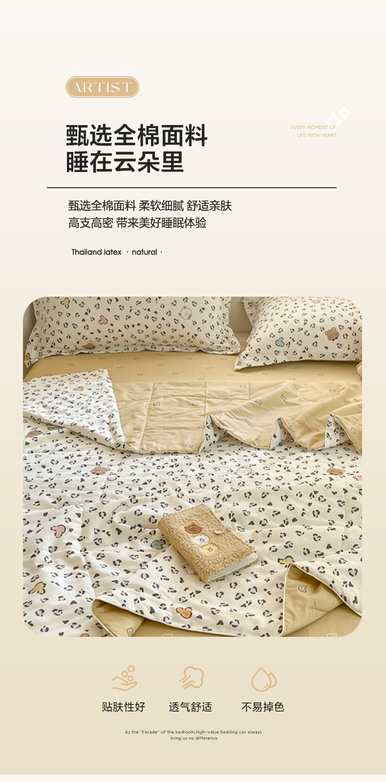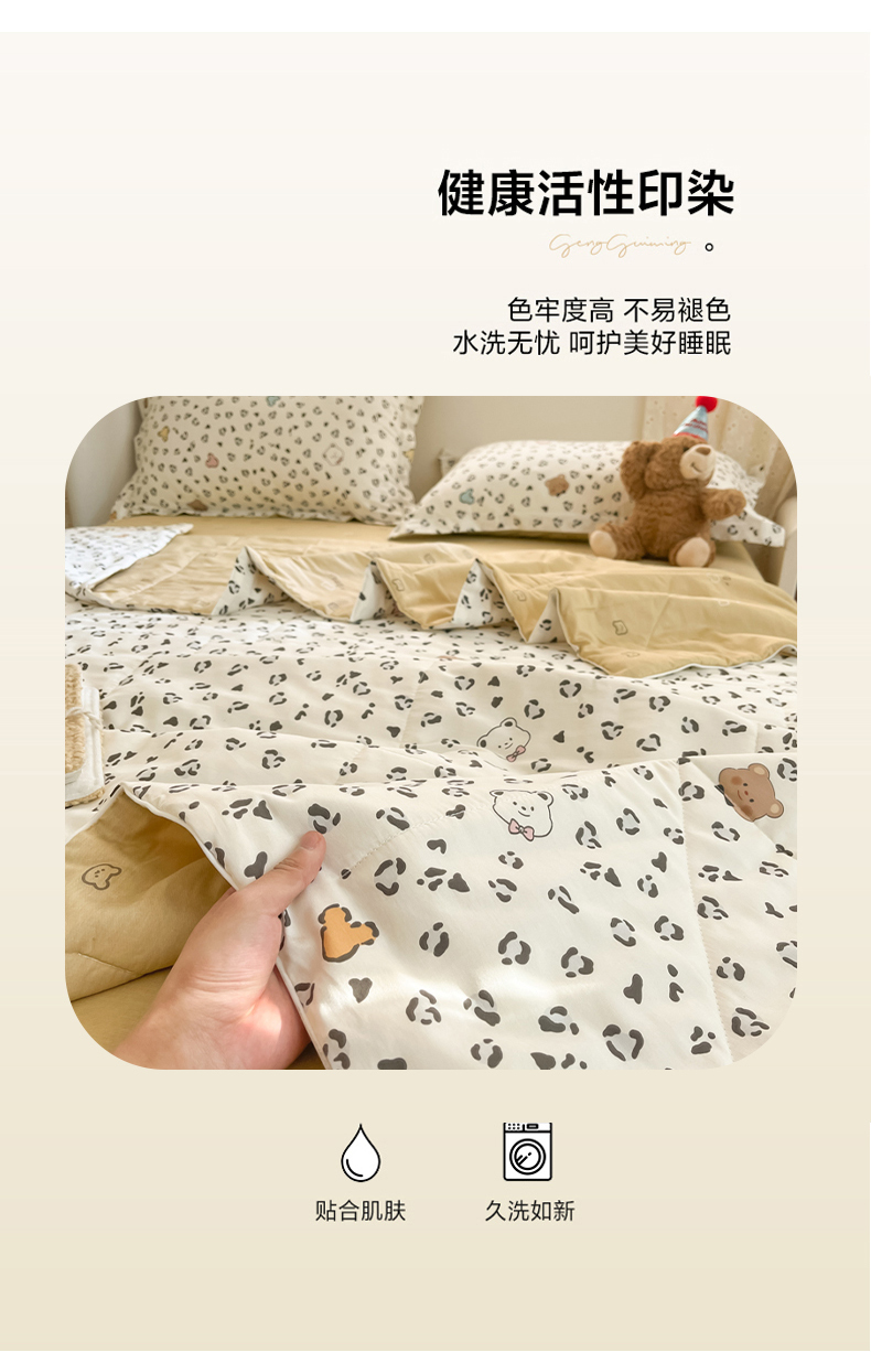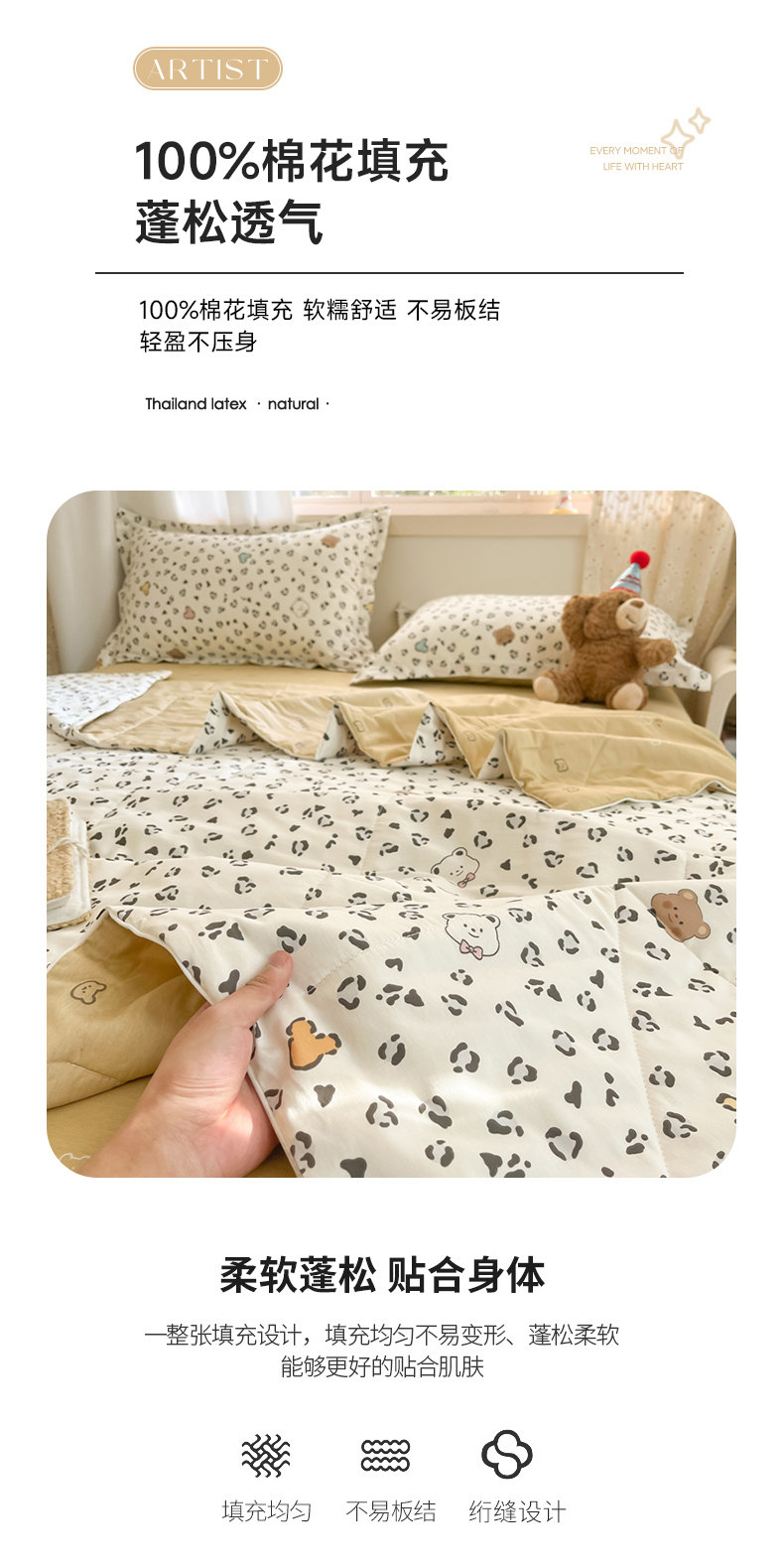 帕拉美拉 2025新款全棉棉花夏被春秋被四件套豹纹小熊-全棉棉花