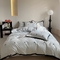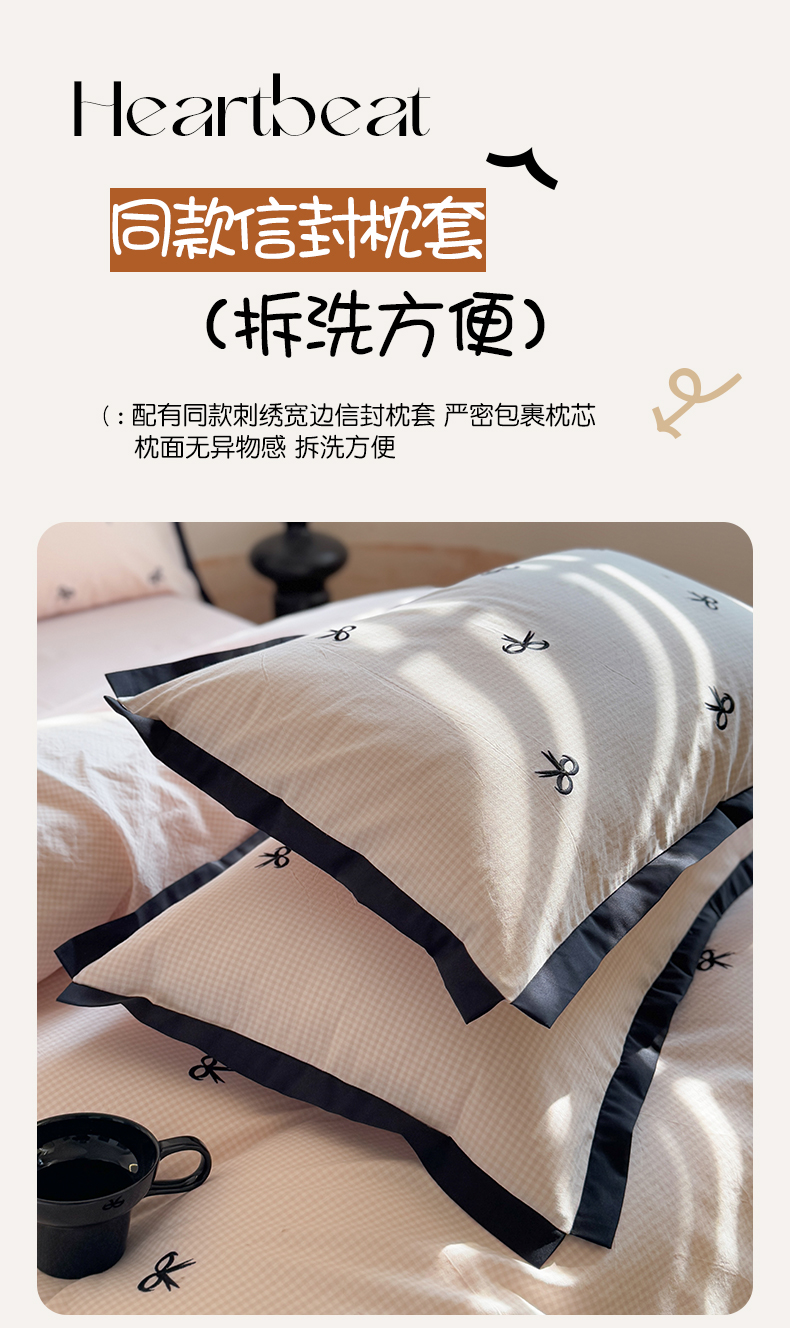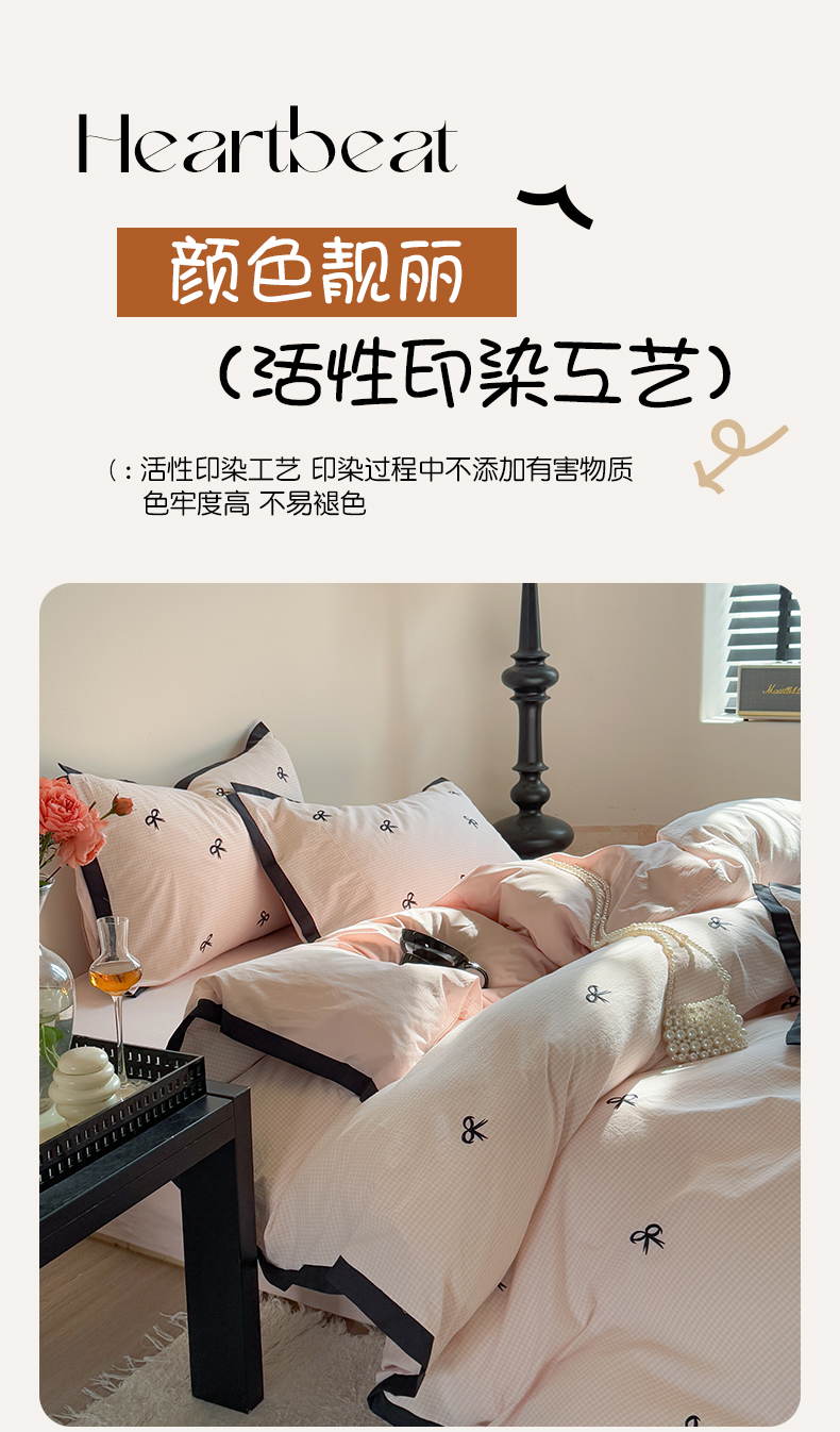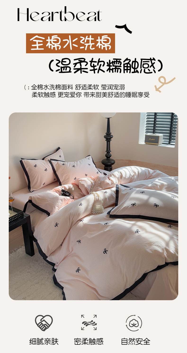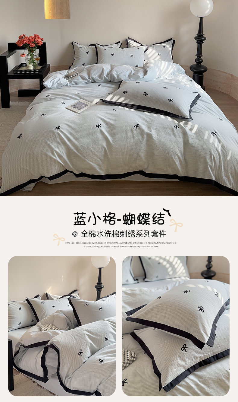 优悦生活馆2025新款全棉纯棉水洗棉刺绣四件套 蓝小格-蝴蝶结