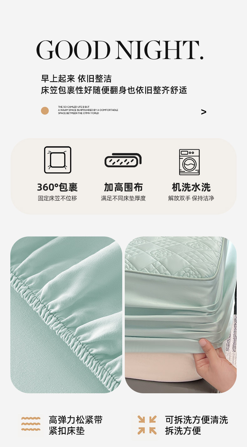 商品名称:2025A类母婴级长绒棉夹棉床笠三件套纯棉全棉加厚席梦思床罩床套四季款保护罩 茶绿