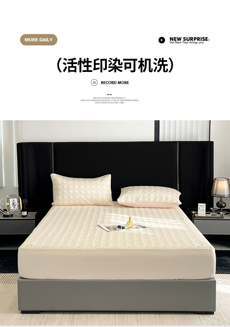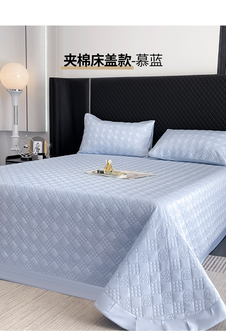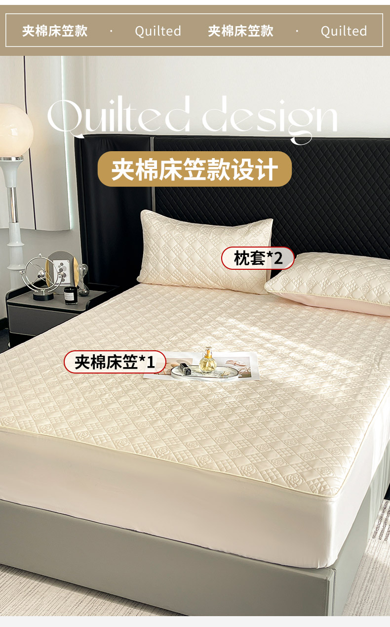 2025轻奢风A类长绒棉夹棉床盖床笠三件套纯色绗绣四季高级感纯色全棉纯棉床上用品 奶玉