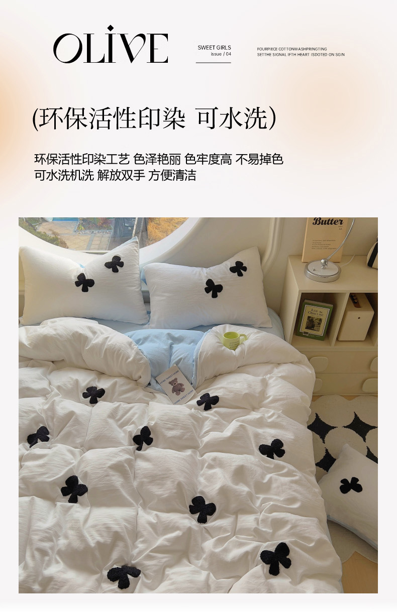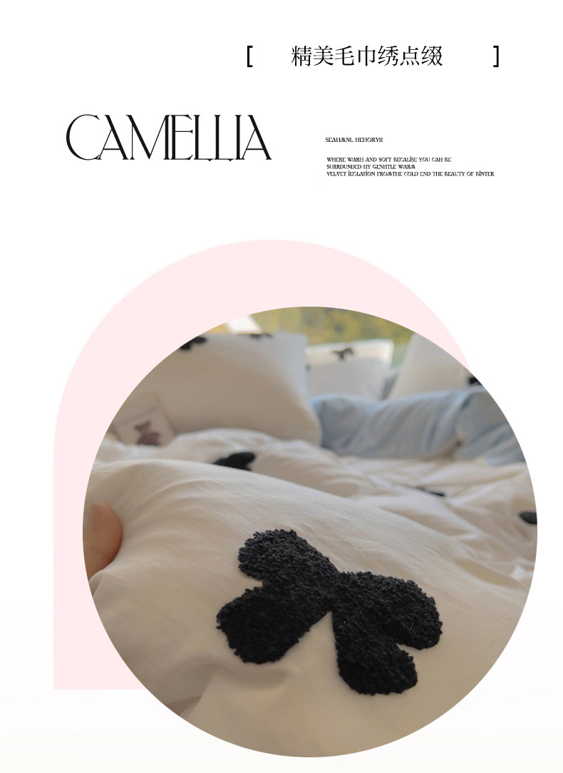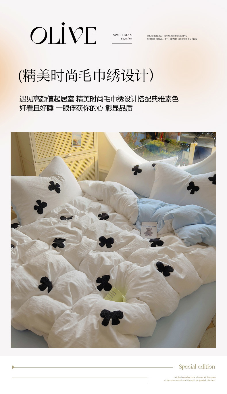 商品名称:(总)花伞家居 2025新款A类水洗棉蝴蝶结毛巾绣四件套