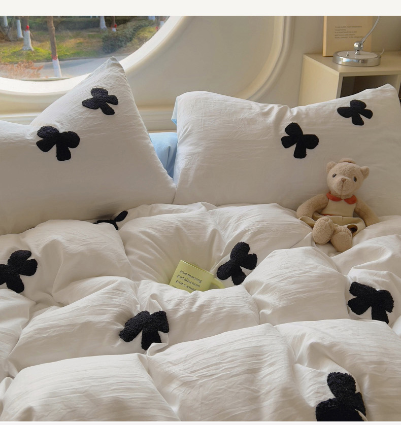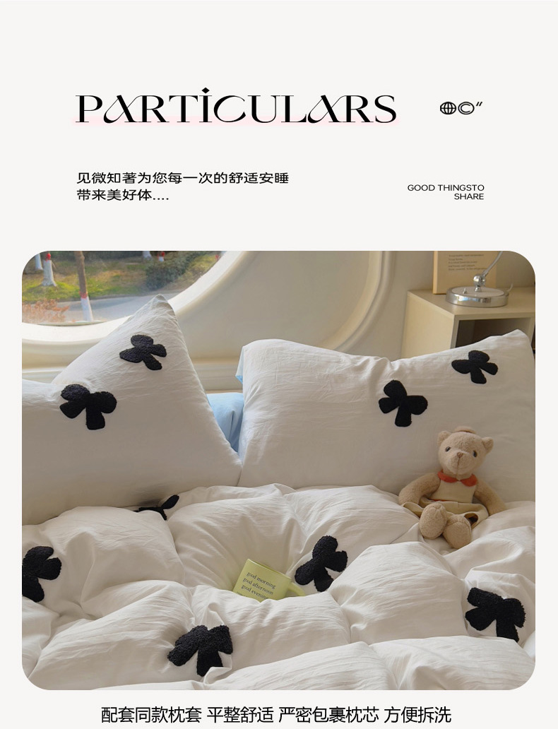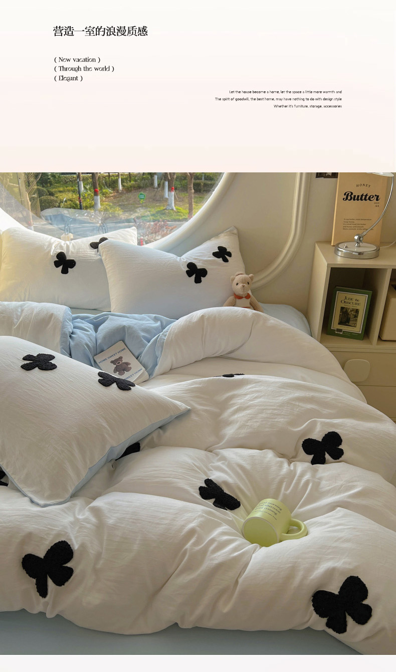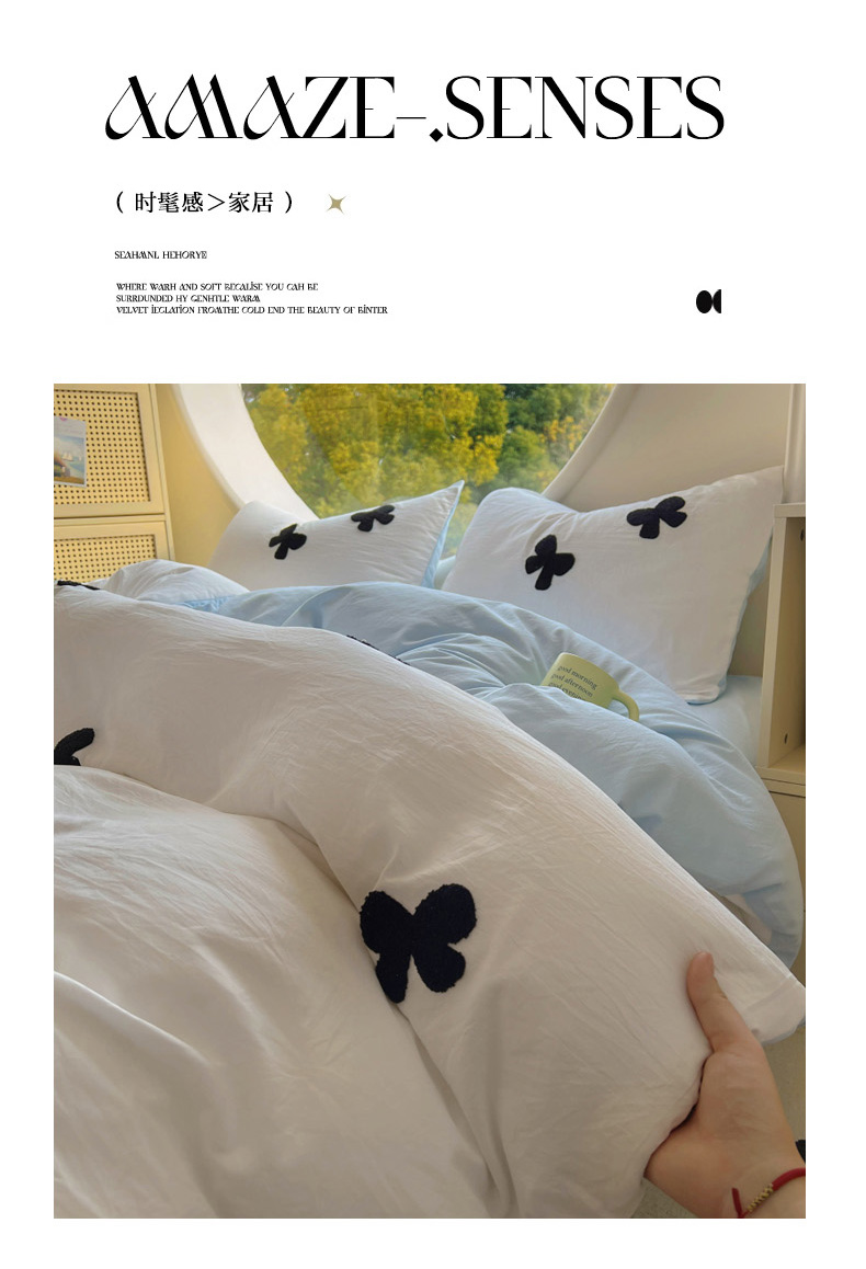 商品名称:(总)花伞家居 2025新款A类水洗棉蝴蝶结毛巾绣四件套