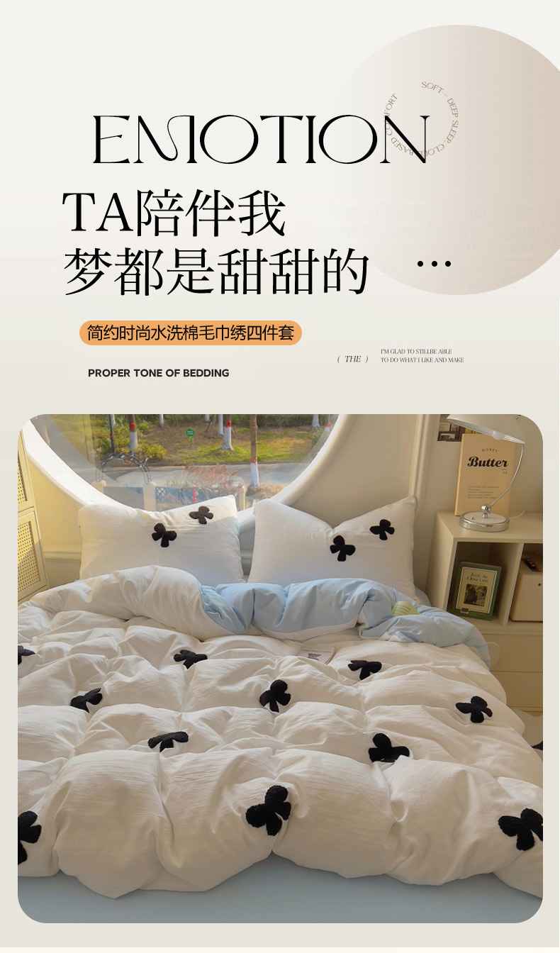 (总)花伞家居 2025新款A类水洗棉蝴蝶结毛巾绣四件套