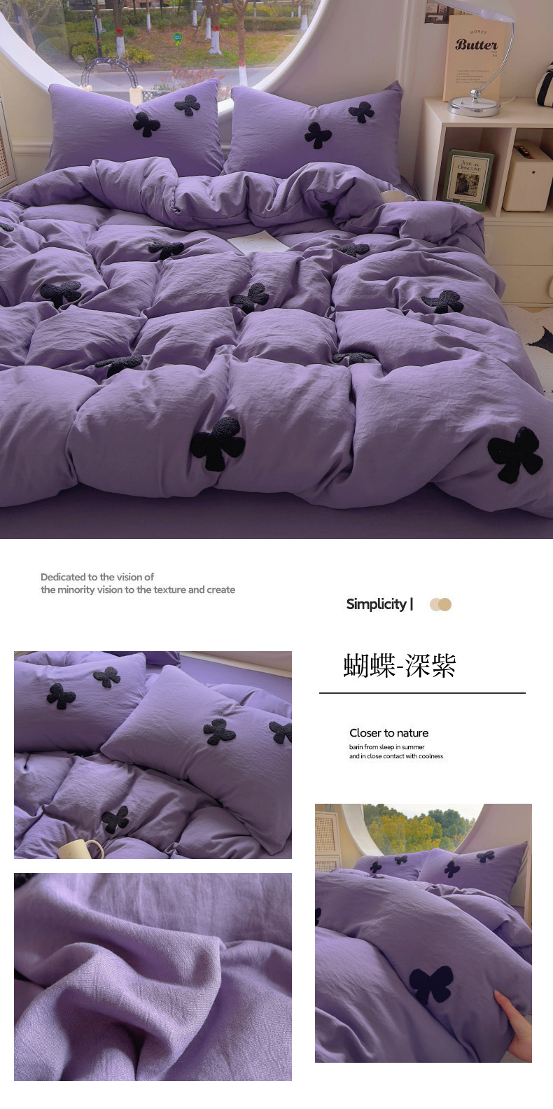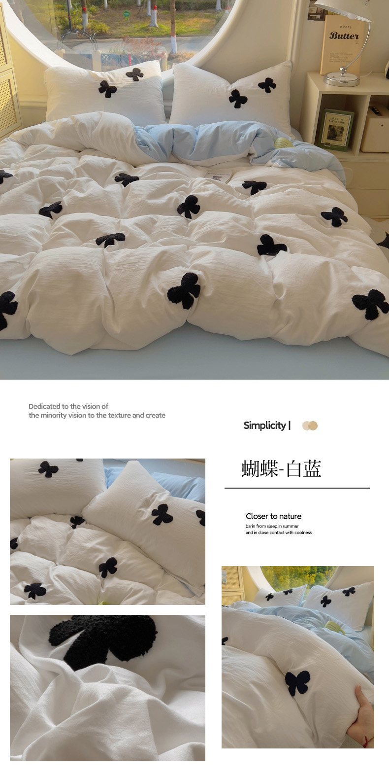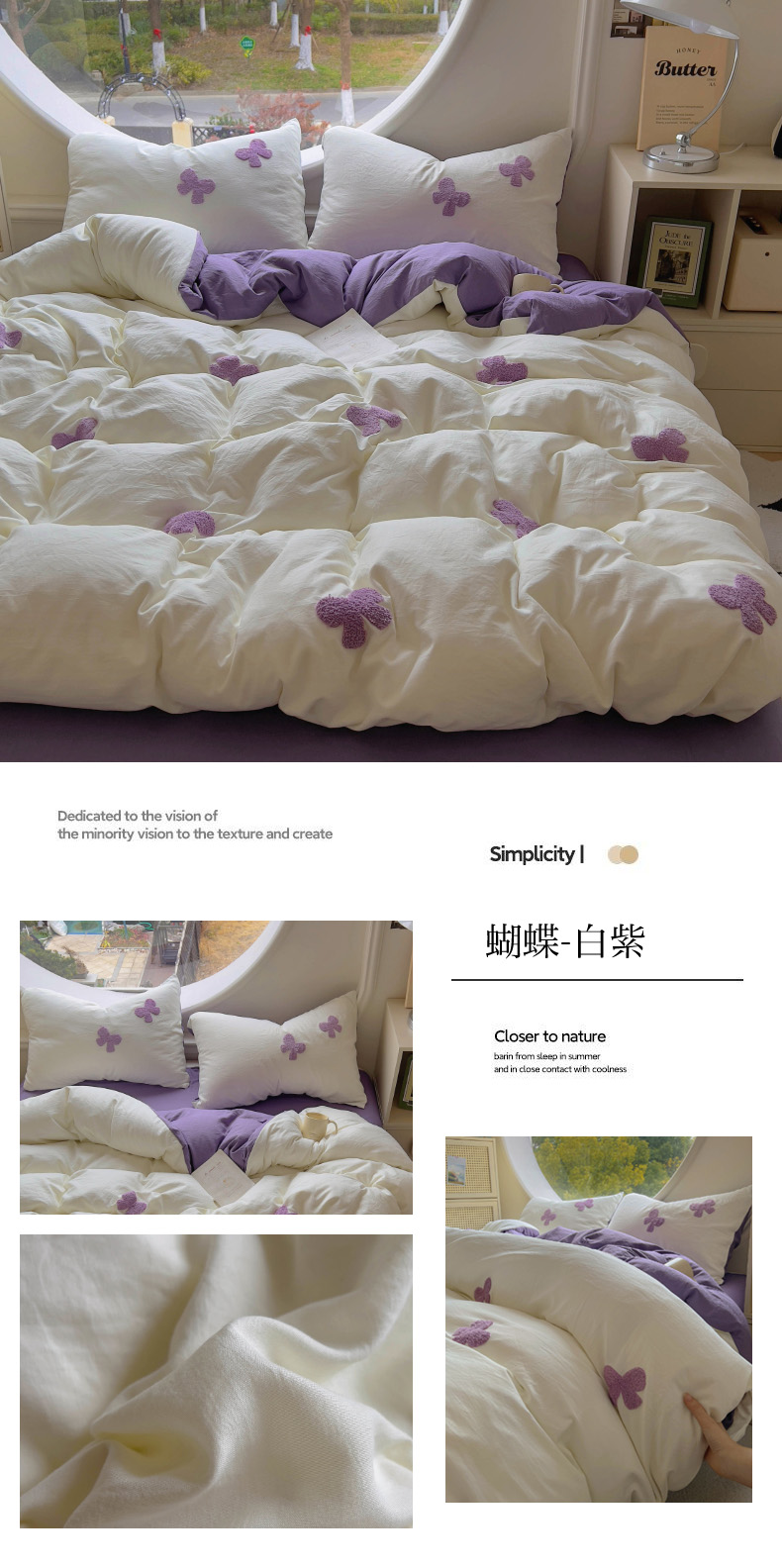 (总)花伞 2024新款印花招财蝴蝶亲肤水洗棉四件套,黑粉蝴蝶,绿蝴蝶,碎花蓝蝴蝶,碎花紫蝴蝶,炫彩蝴蝶,晕染彩蝴蝶