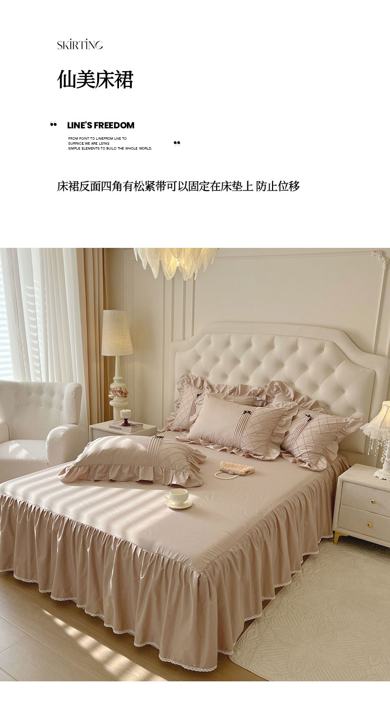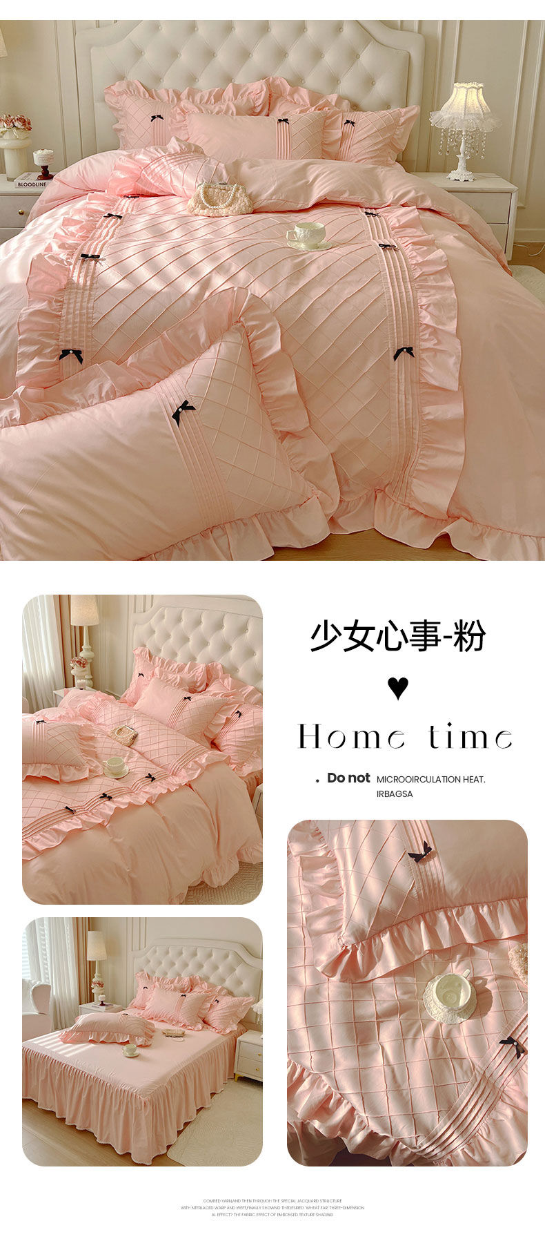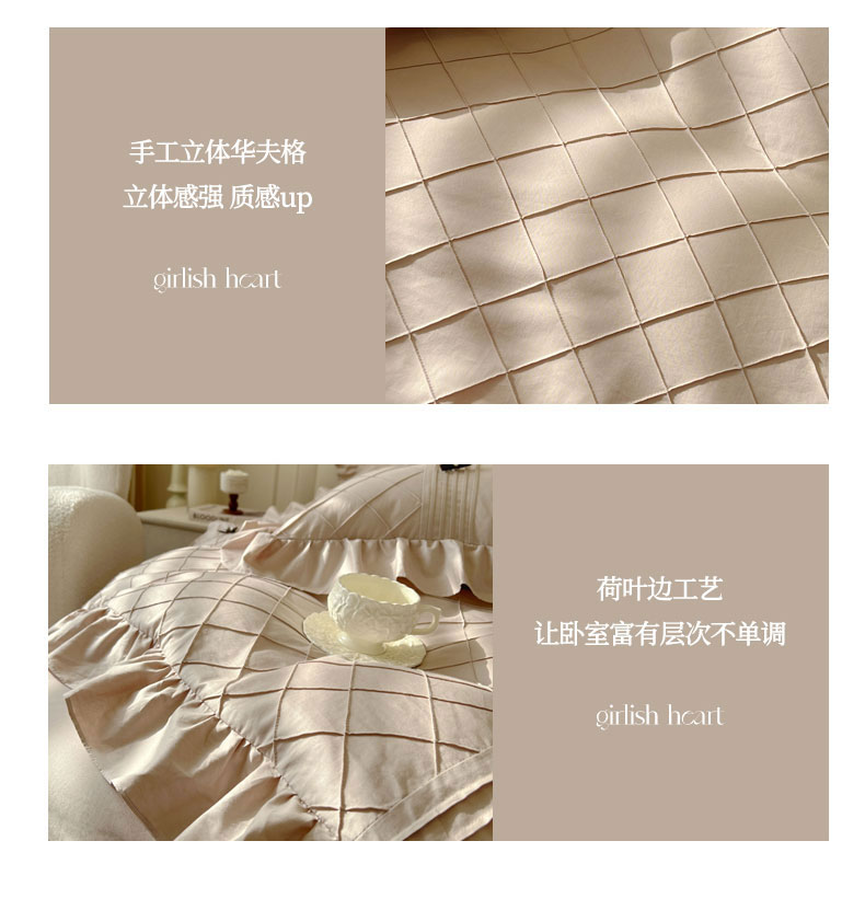 (总)惯盈家纺2025新款全棉华夫格公主裙四件套-糖心公主,白,粉,黄,卡其