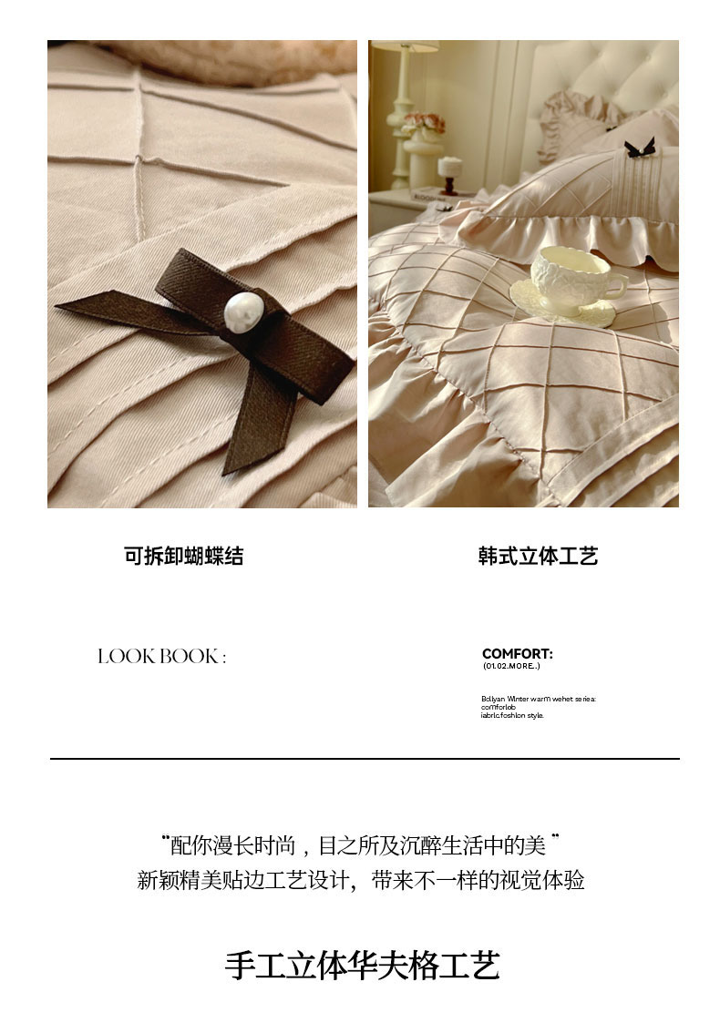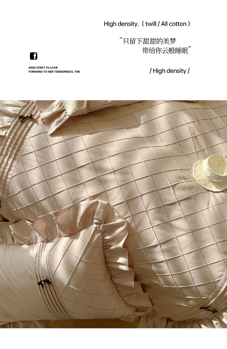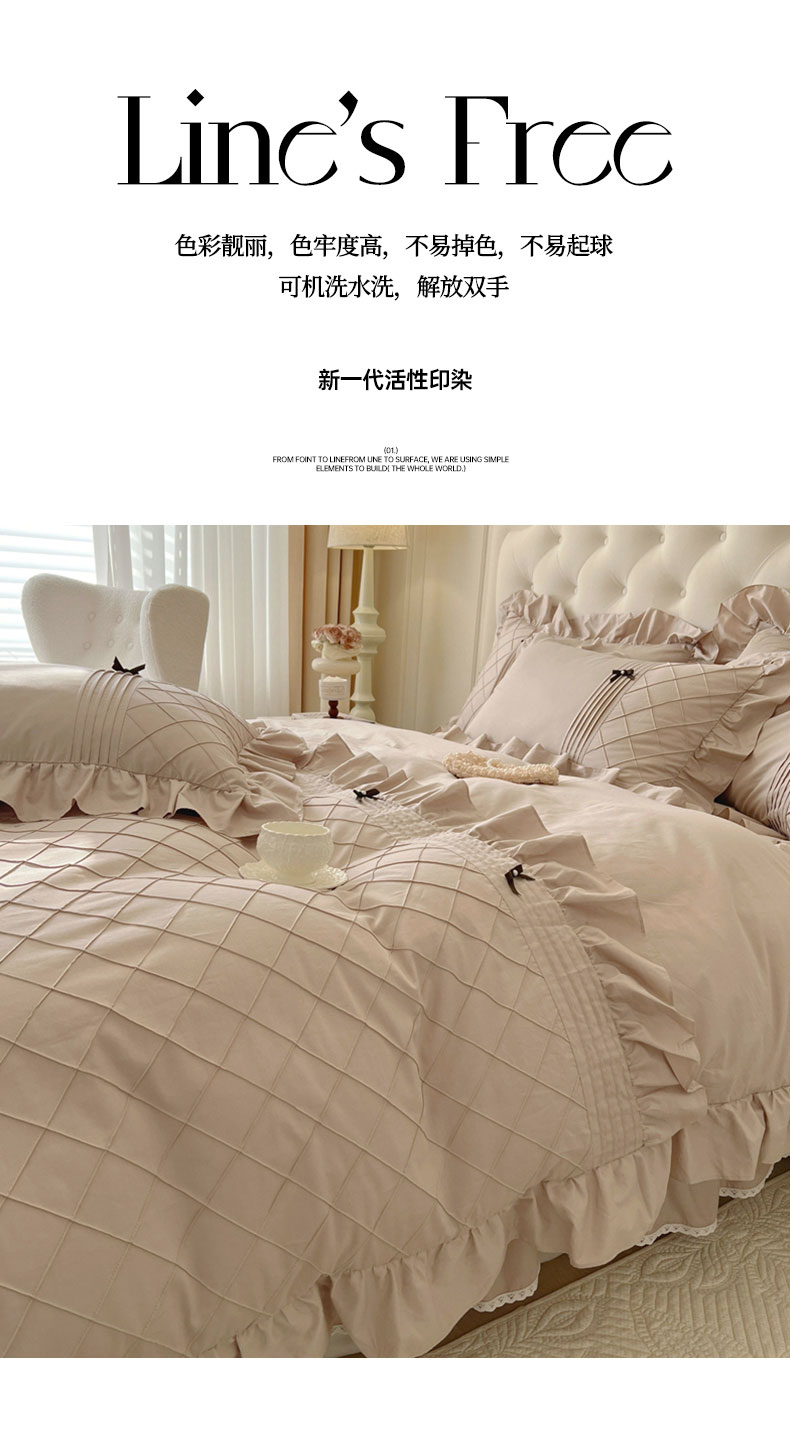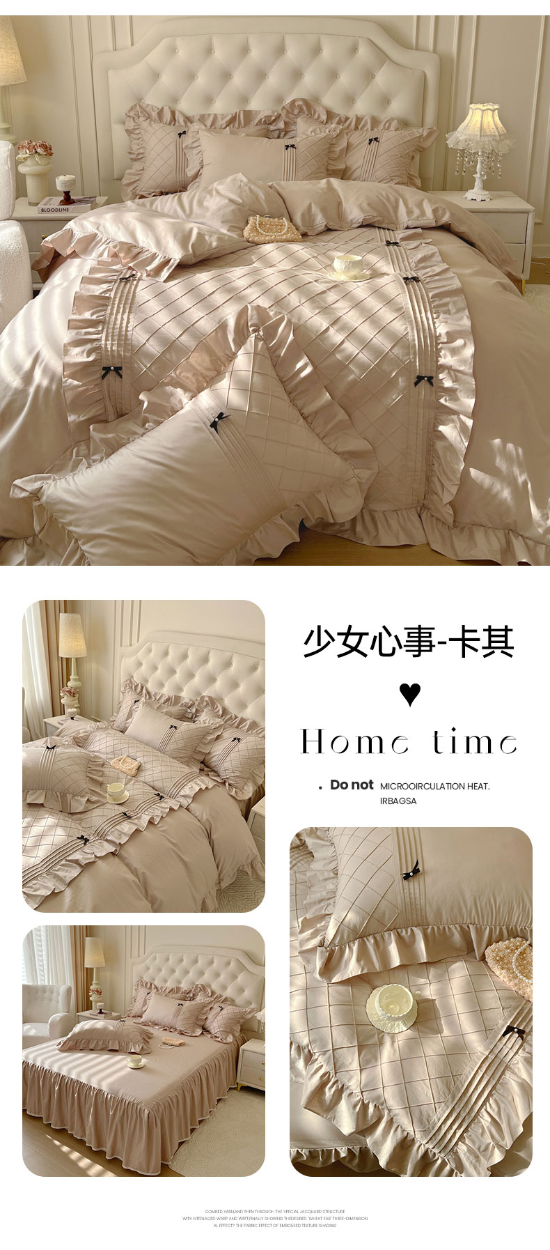 商品名称:惯盈家纺 2025新款韩版全棉四件套华夫格蝴蝶结床裙款-少女心事系列(含买家秀) 卡其