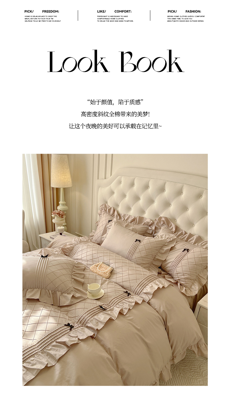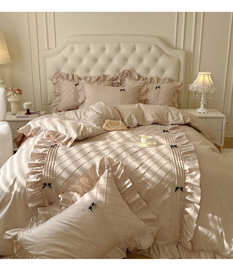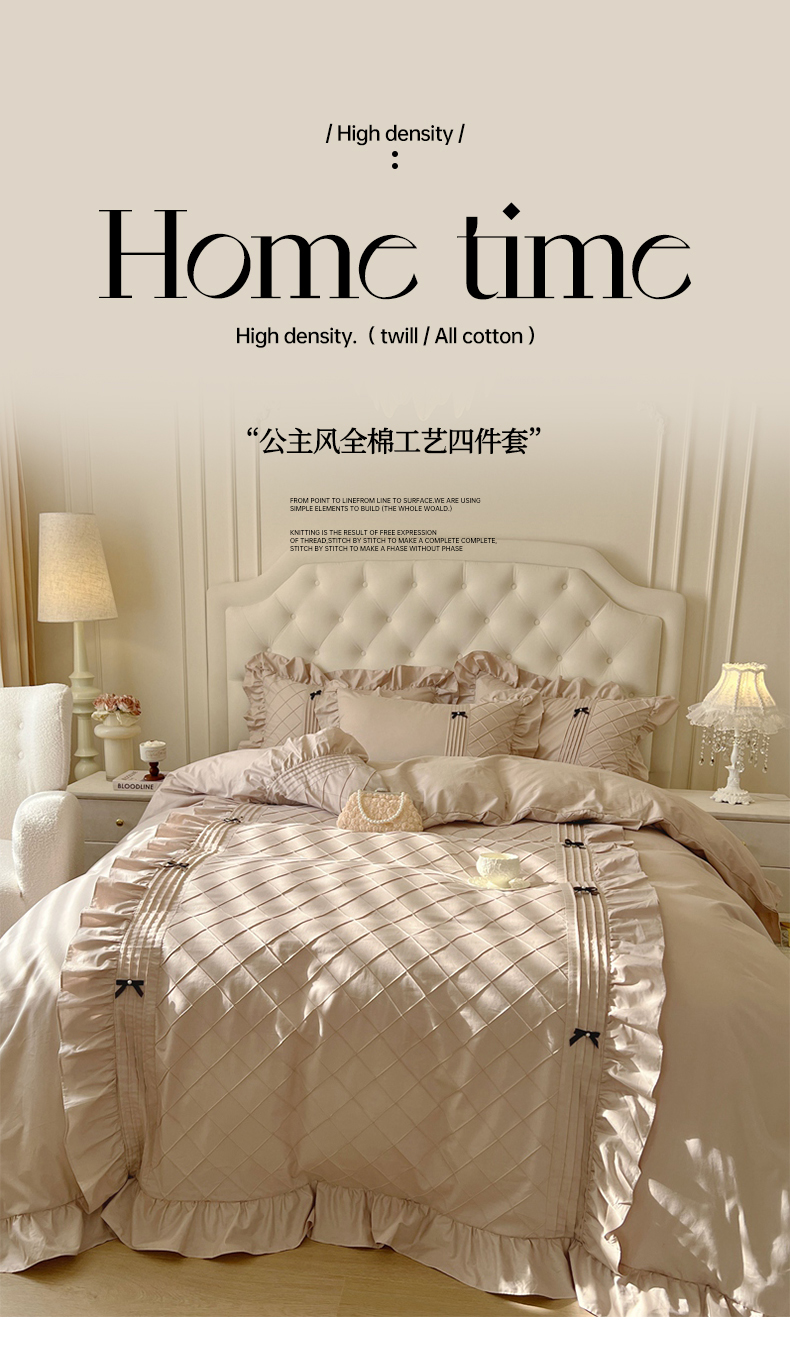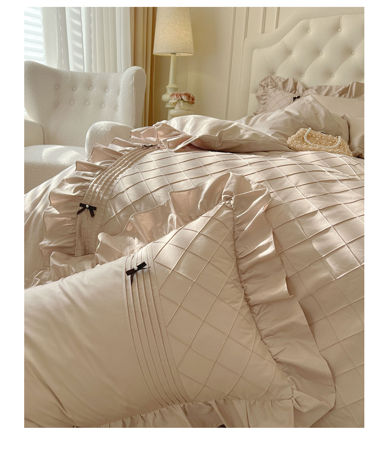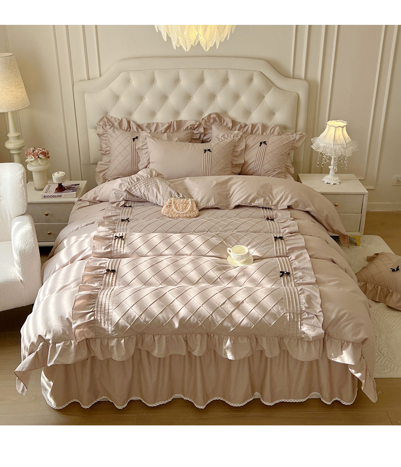 商品名称:惯盈家纺 2025新款韩版全棉四件套华夫格蝴蝶结床裙款-少女心事系列(含买家秀) 卡其