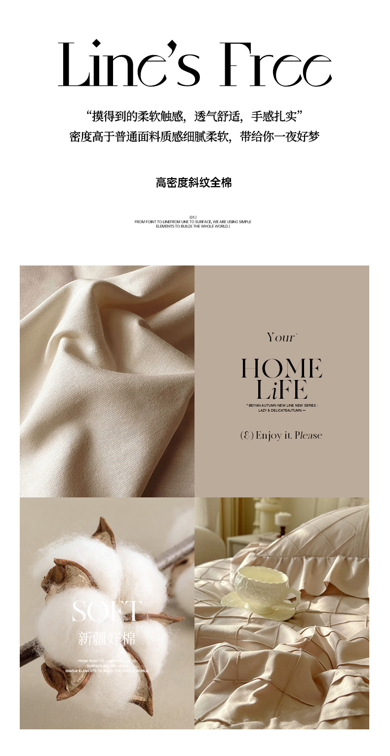 (总)惯盈家纺 2025新款法式镂空花边全棉四件套-奈德里【含买家秀】,奈德里-粉色,奈德里-卡其,奈德里-奶芙