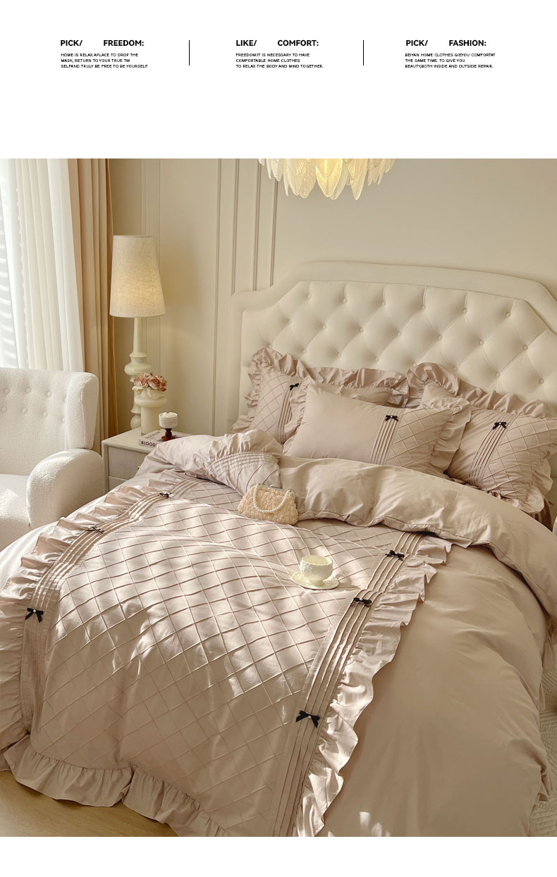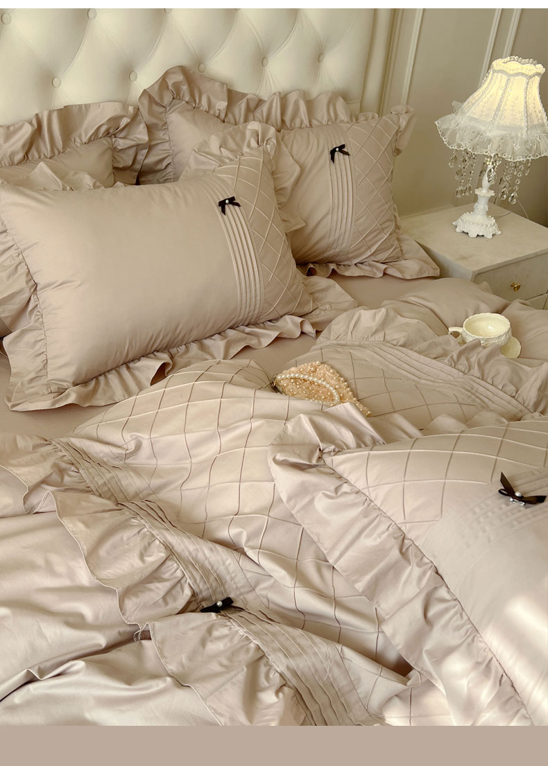 惯盈家纺 2025新款韩版全棉四件套华夫格蝴蝶结床裙款-少女心事系列(含买家秀) 卡其