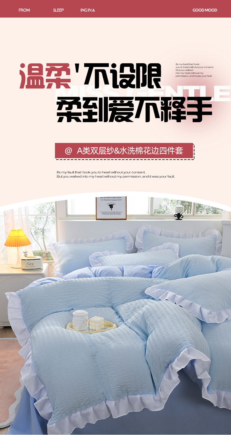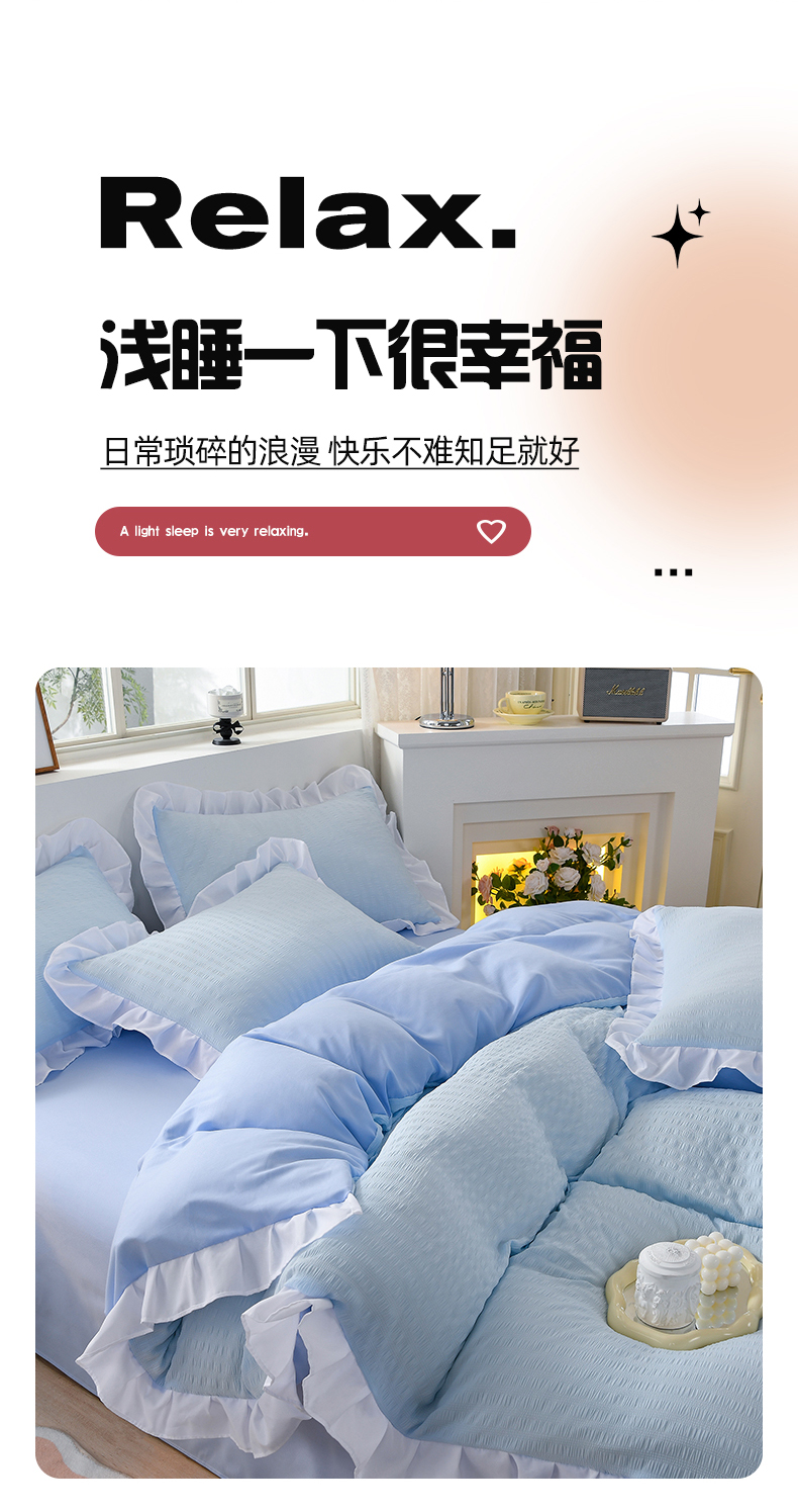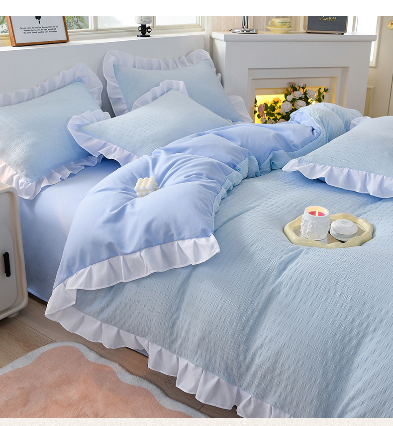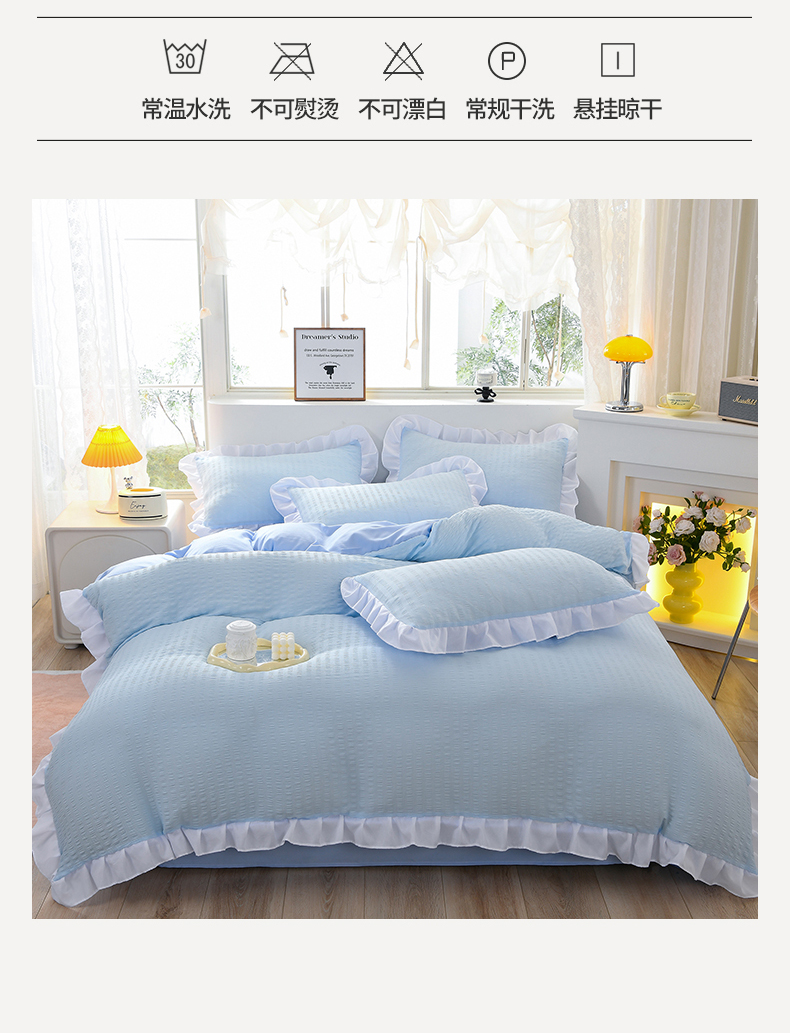 当前位置: 91家纺网 > 商品网购 > 床品套件 > 四件套 > 水洗棉四件套 > 迪拜家纺 2025新款韩版花边水洗棉四件套 韩版-天空兰