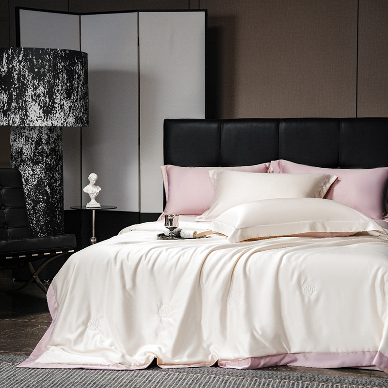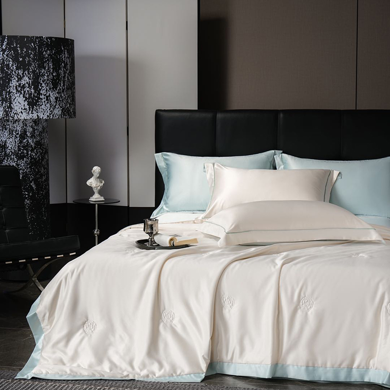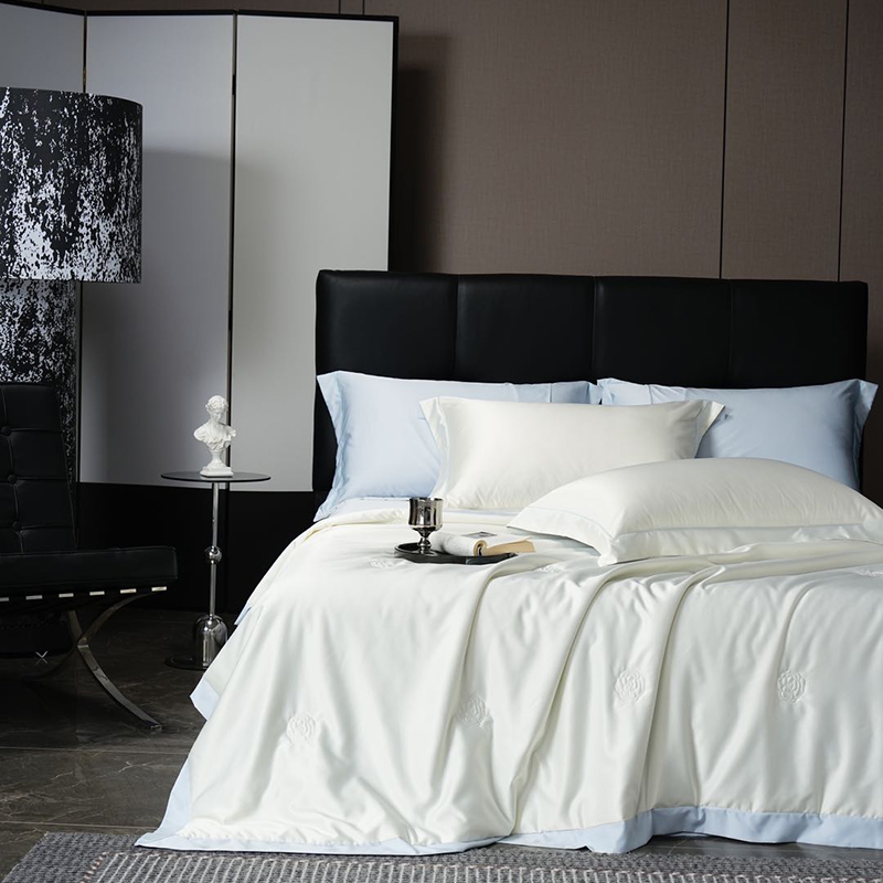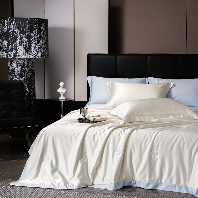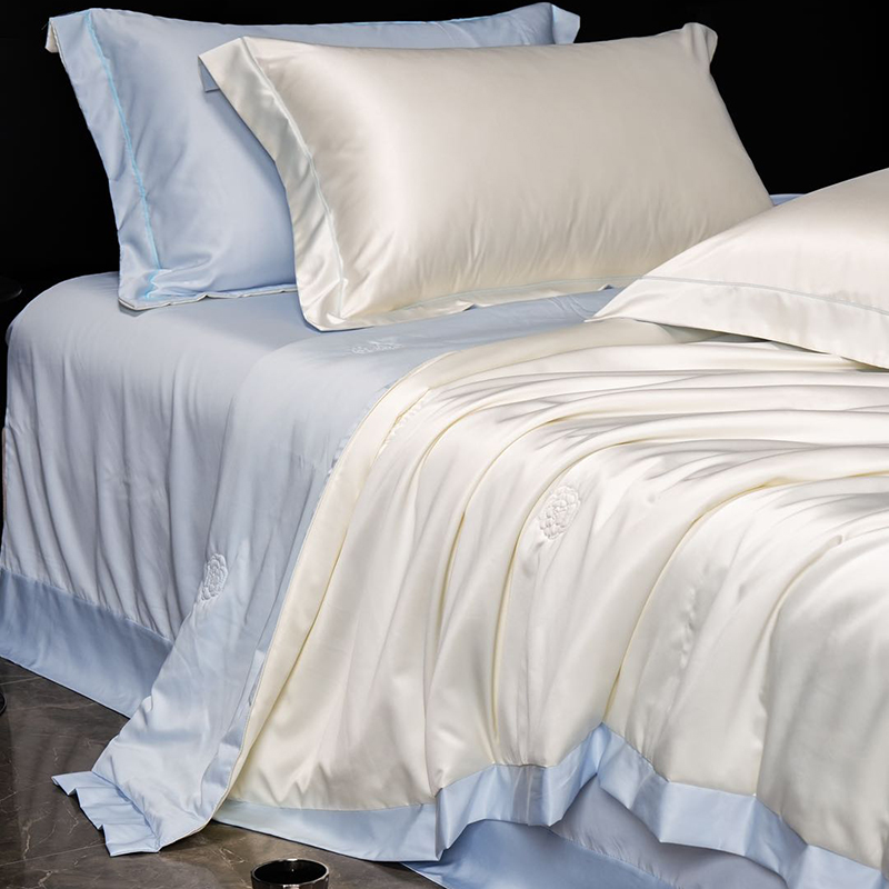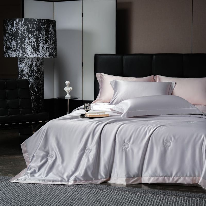 商品名称:丽卡家纺 2025新款凉爽鸭天丝夏被四件套 卡其+浅灰