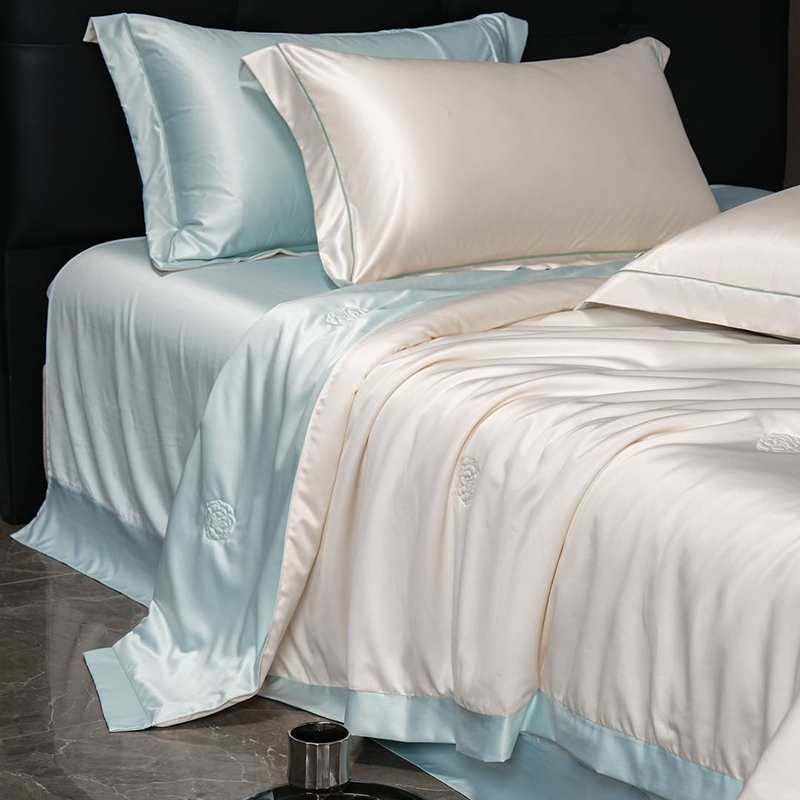 丽卡家纺 2025新款凉爽鸭天丝夏被四件套 卡其+浅灰