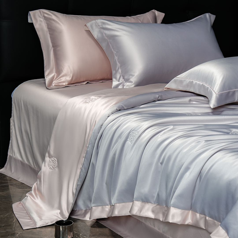 (总)丽卡家纺2025新款冰丽丝锦氨凉感夏被子被芯,淡雅紫+天空蓝,青草绿+浅银灰,珊瑚橘+浅银灰