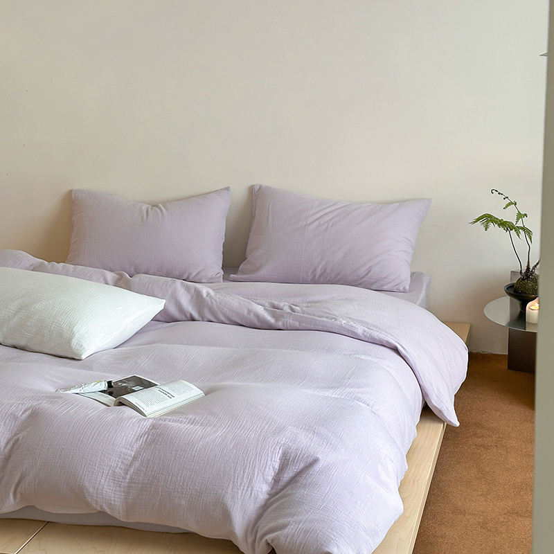 当前位置: 91家纺网 > 商品网购 > 床品套件 > 四件套 > 双层纱四件套 > 简家居 2025新款全棉纯色双层纱四件套系列 烟紫