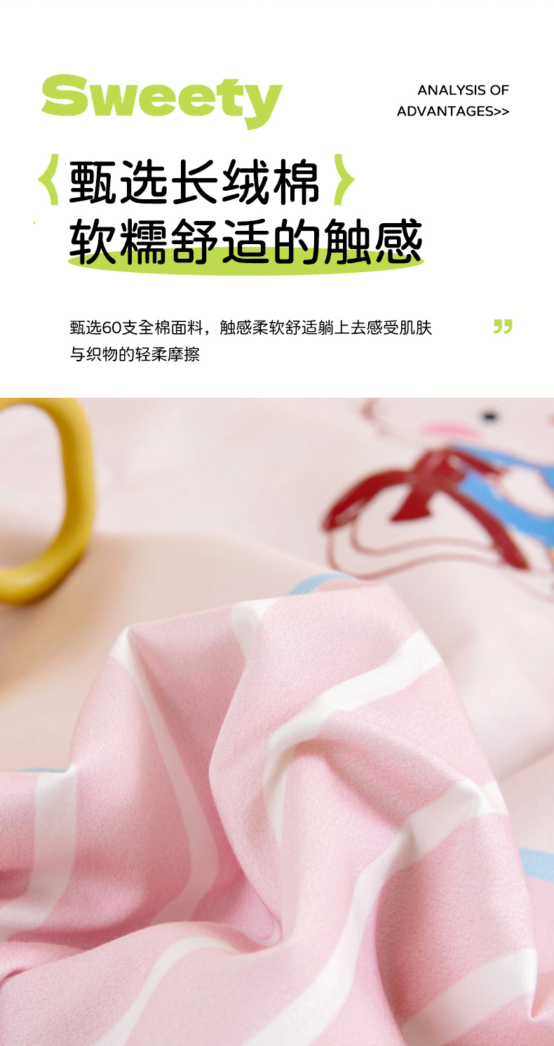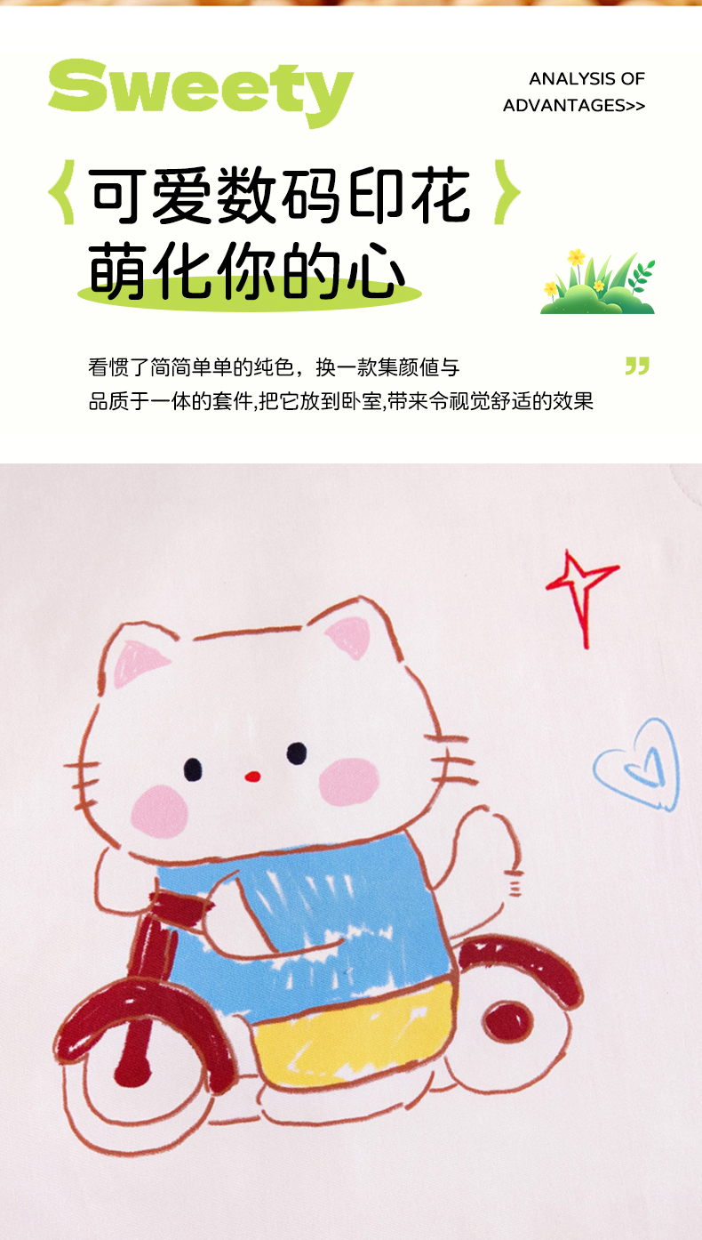 (总)御棉坊 2025年A类60支长绒棉数码印花幼儿园儿童套件,波点小屋,动物聚会,苹果恐龙,骑车小猫,星彩小兔,幸运小鹿,音乐派对