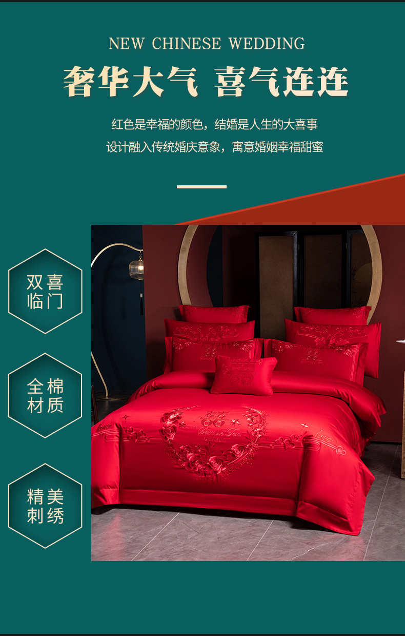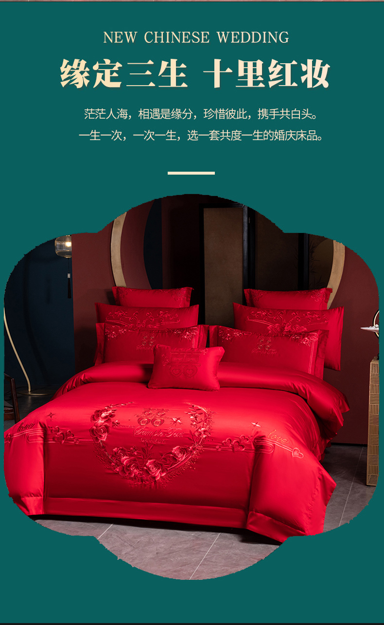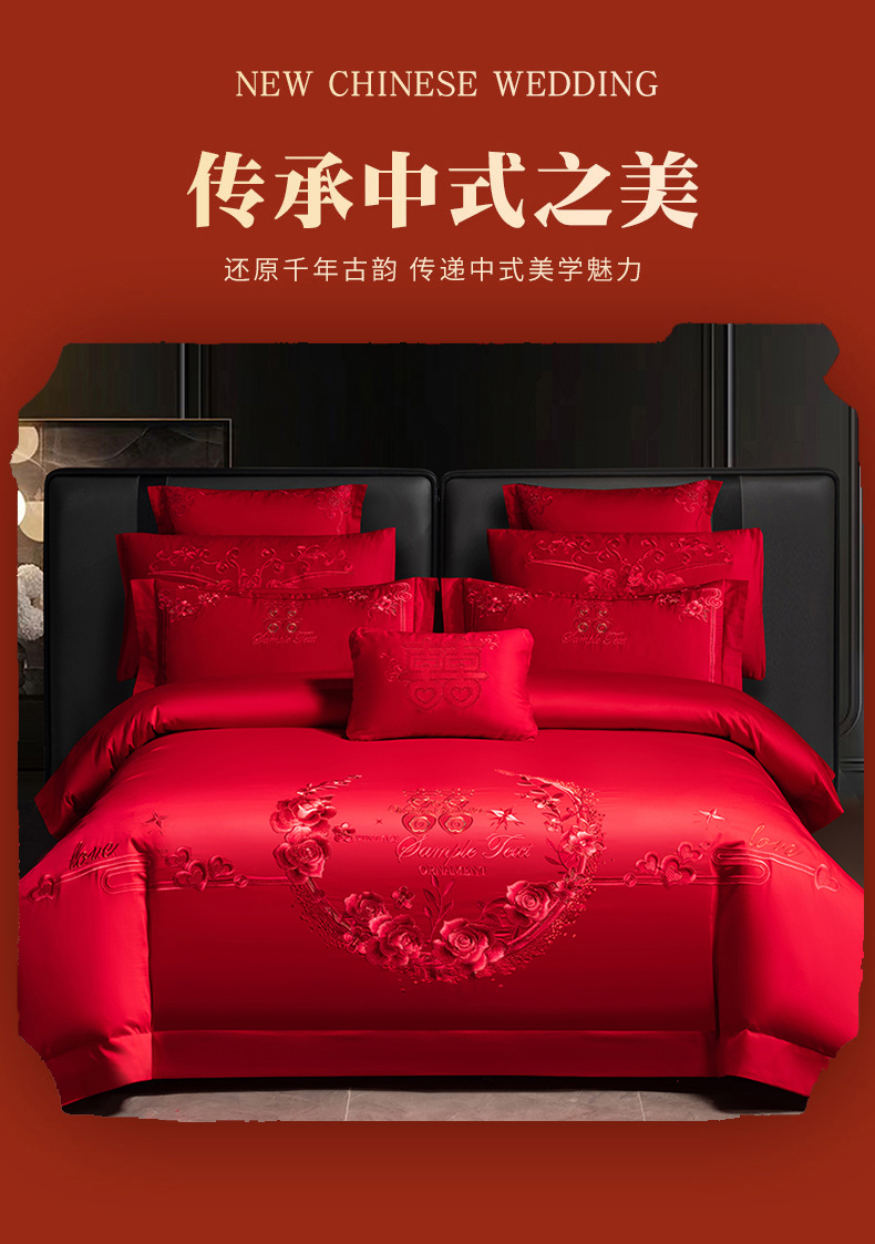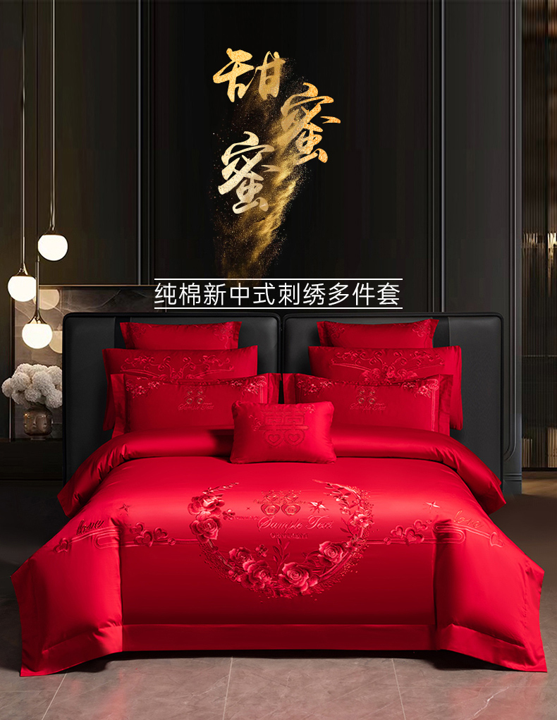 当前位置: 91家纺网 > 商品网购 > 床品套件 > 多件套 > 多件套 > 博之洋婚庆 2025新款全棉长绒棉刺绣新中式婚庆系列多件套甜蜜蜜-红