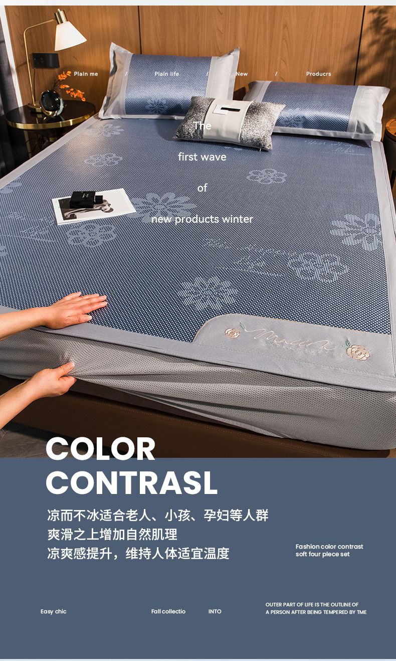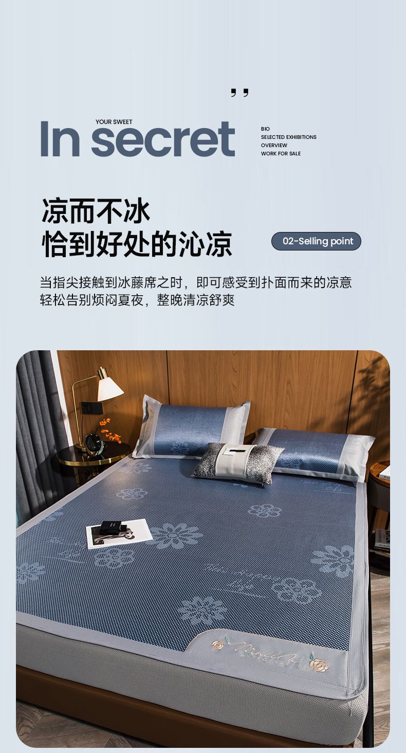商品名称:(总)摩妮卡 2025新款刺绣双面冰藤席床笠款三件套