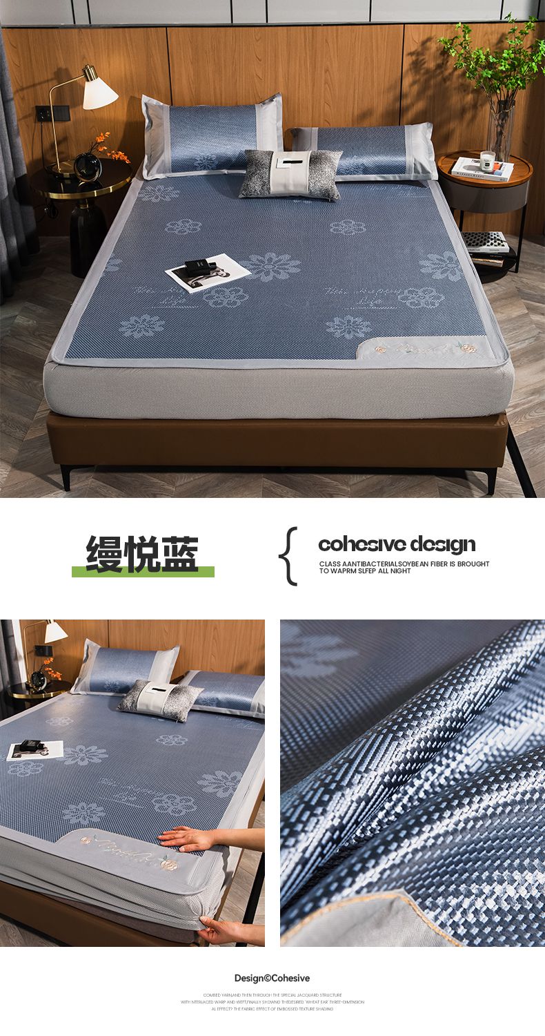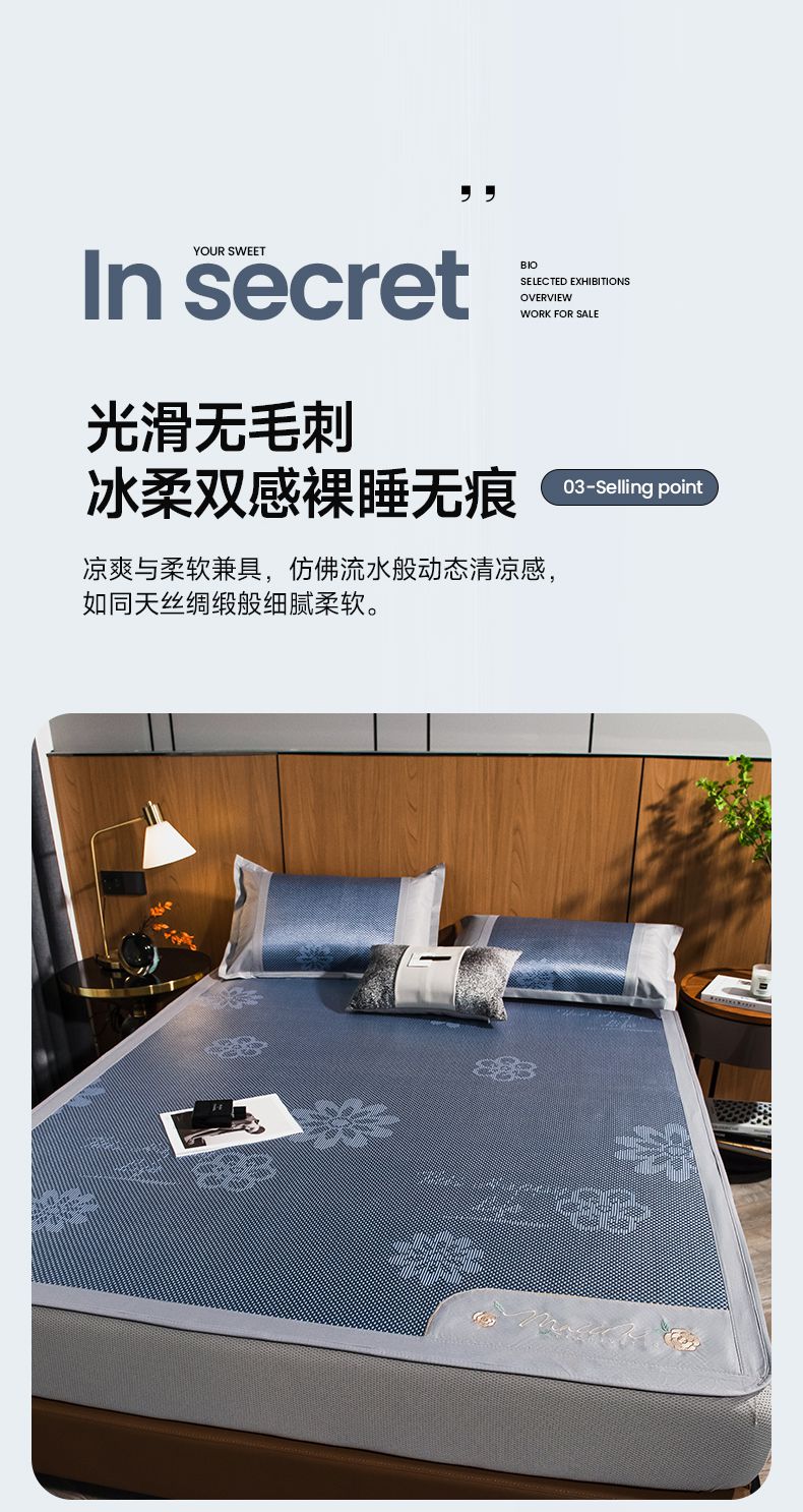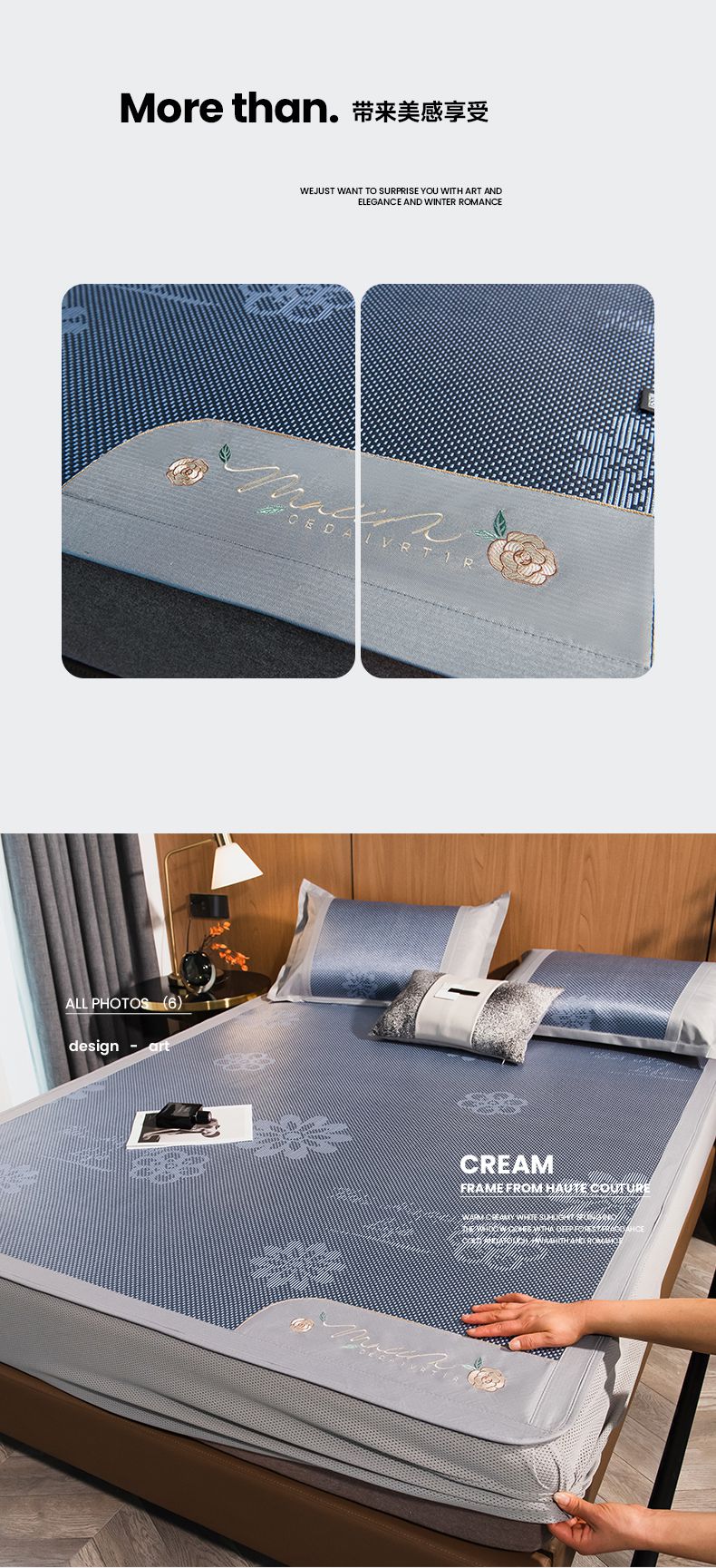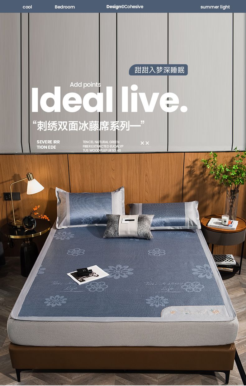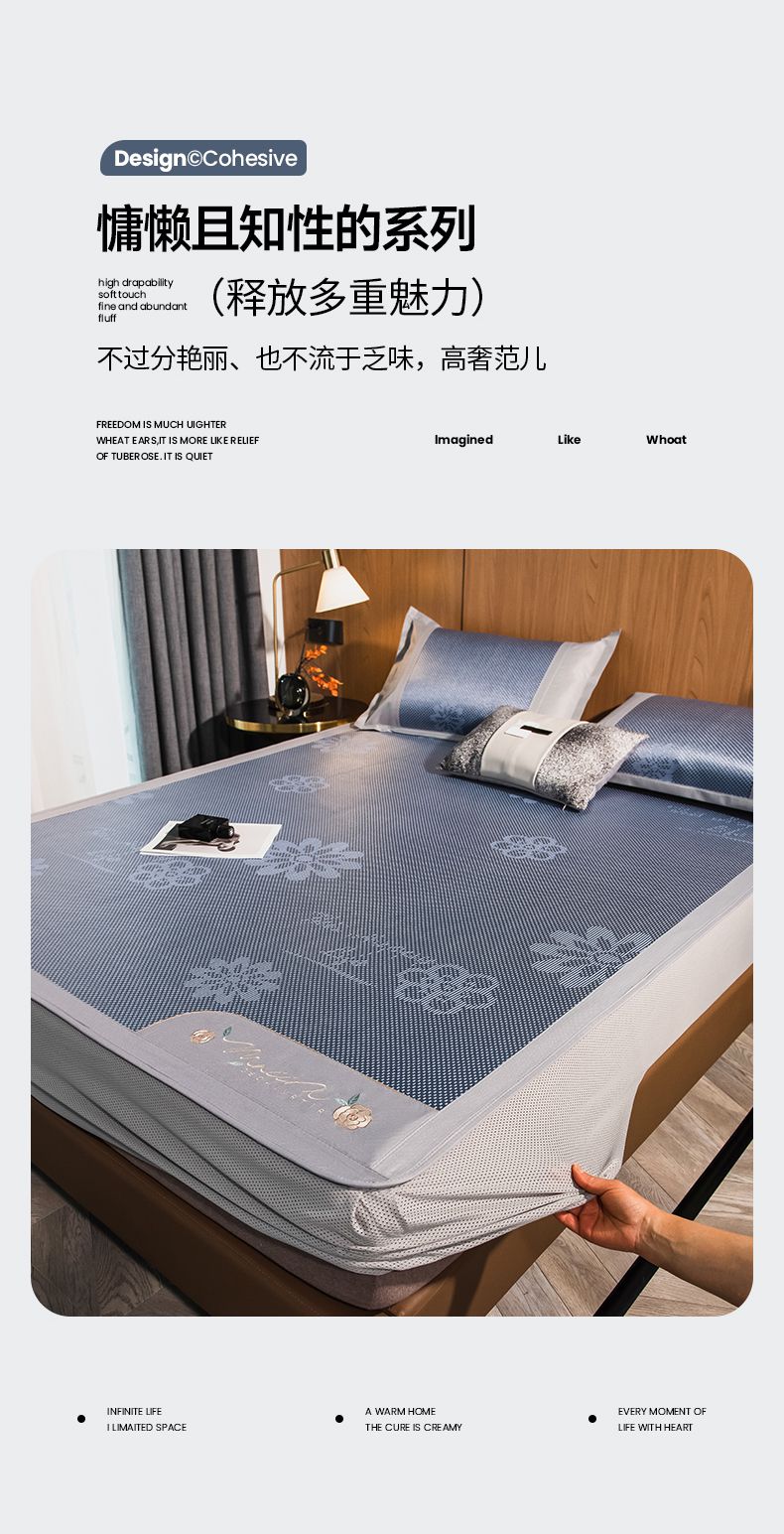 (总)摩妮卡 2025新款刺绣双面冰藤席床笠款三件套