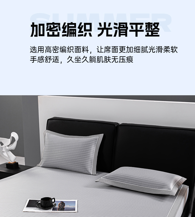 (总)2023新款超精密冰丝席-小斜纹系列-床笠款藤席凉席竹席,粉色,蓝色,绿色,银灰
