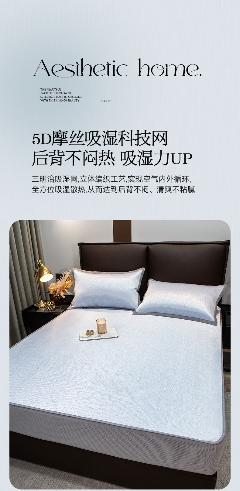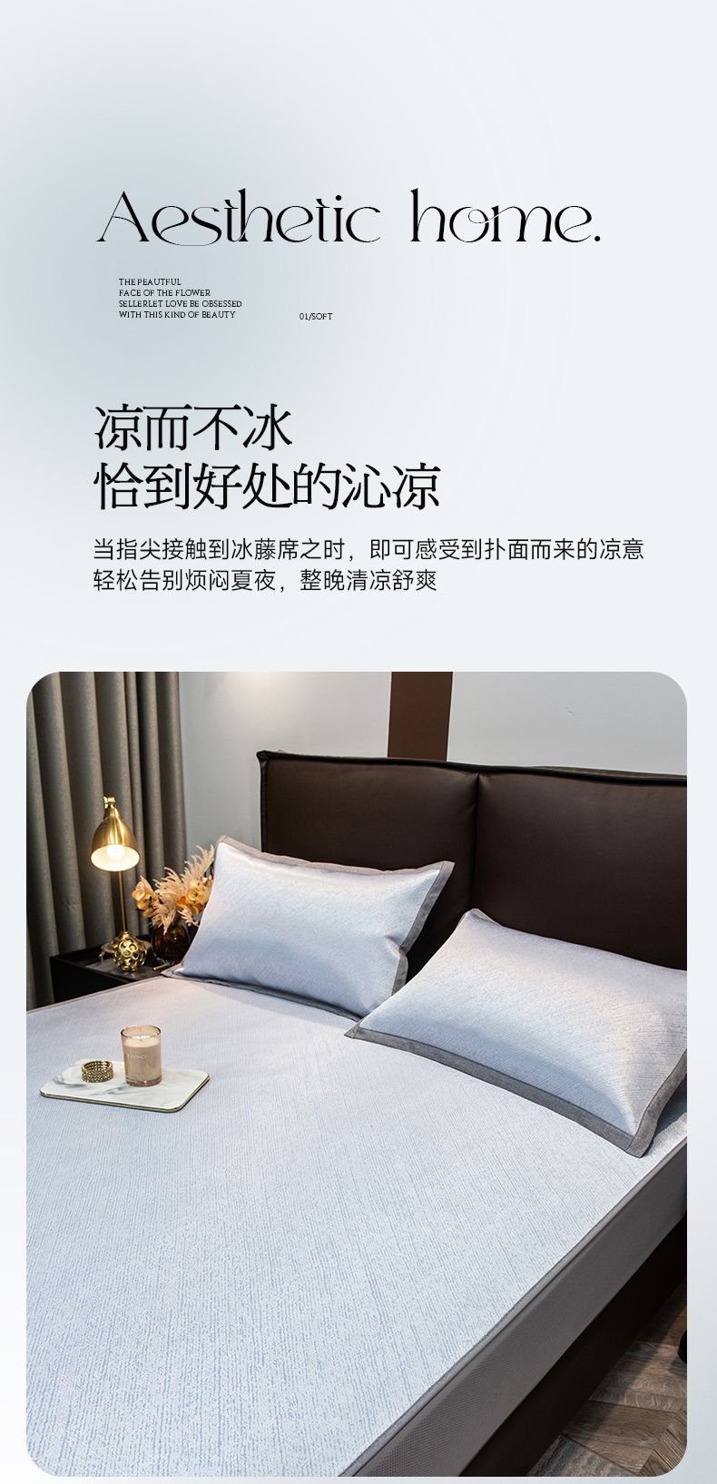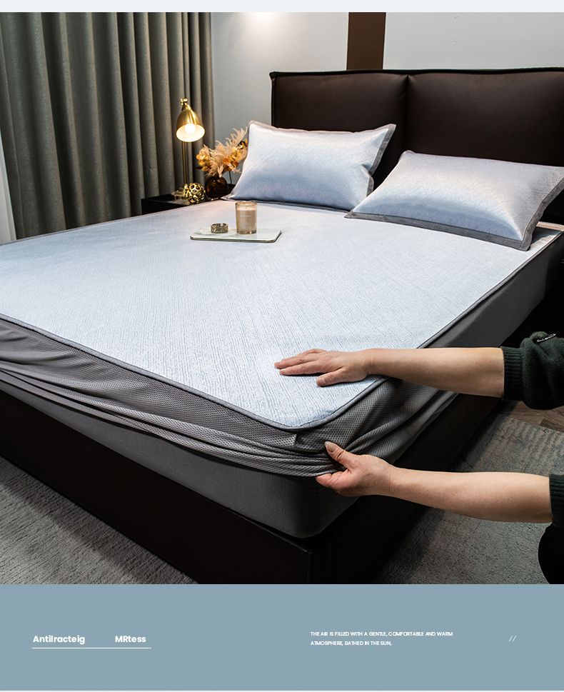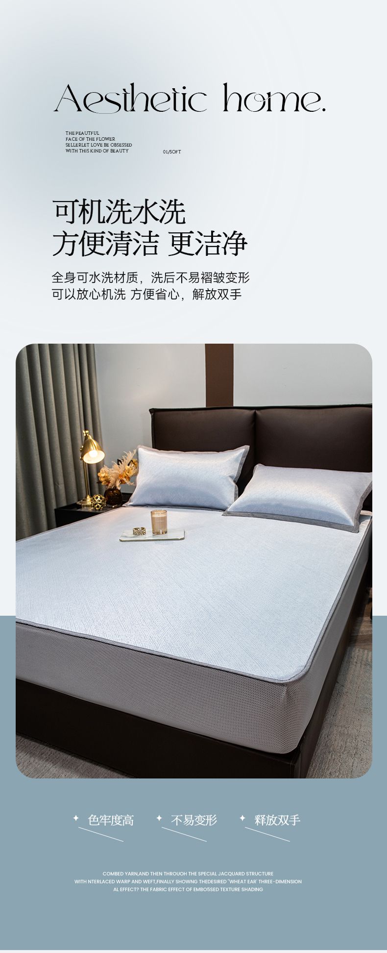商品名称:摩妮卡 2025新款高精密粗冰丝席床笠款三件套 羡黛-软香蓝