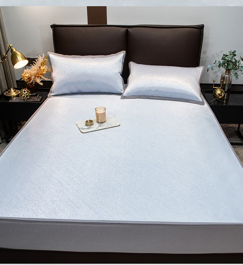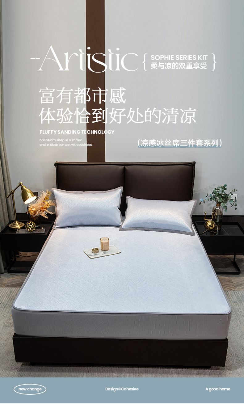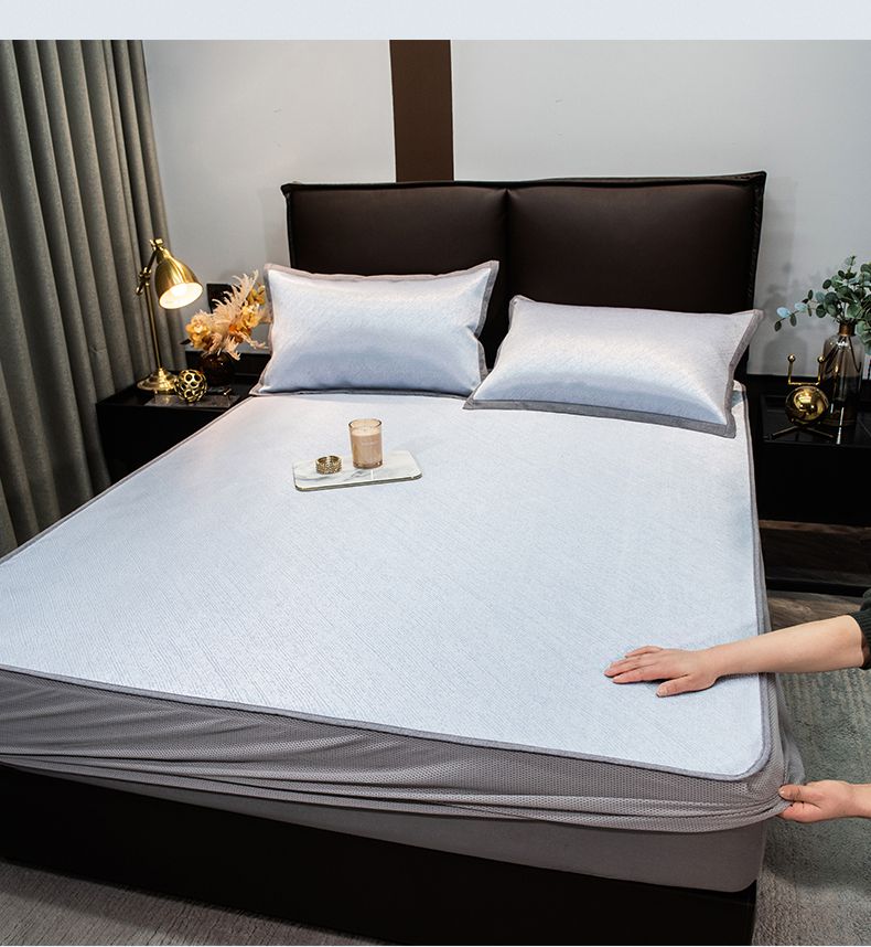 摩妮卡 2025新款高精密粗冰丝席床笠款三件套 羡黛-软香蓝