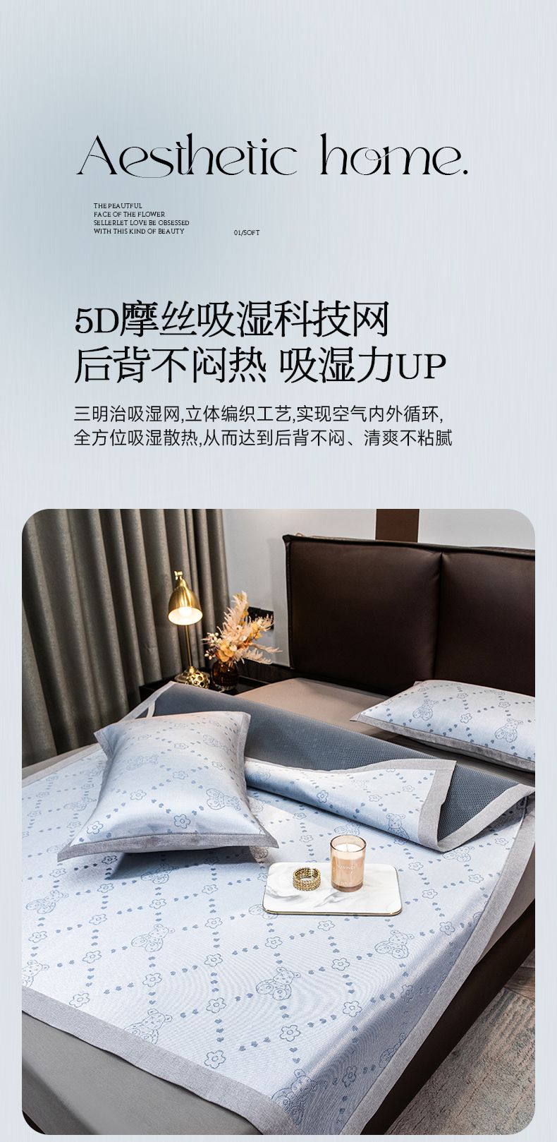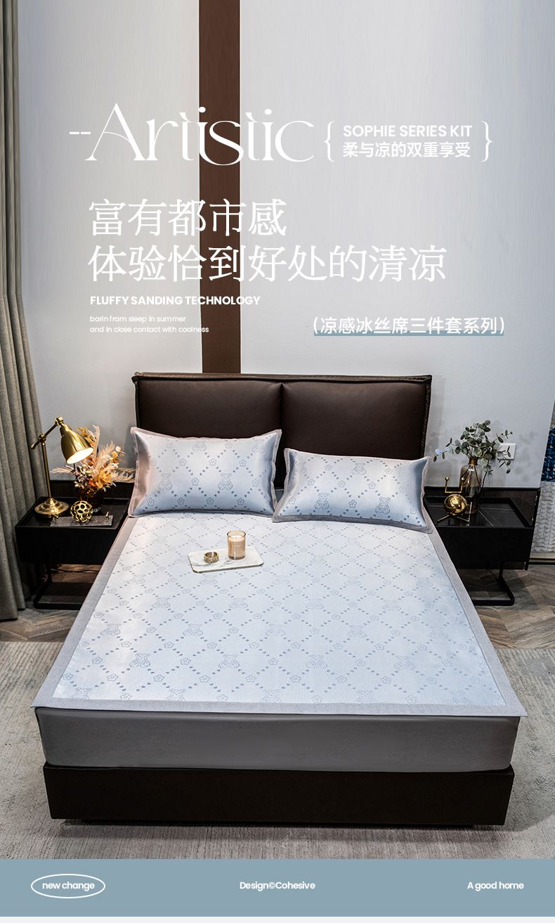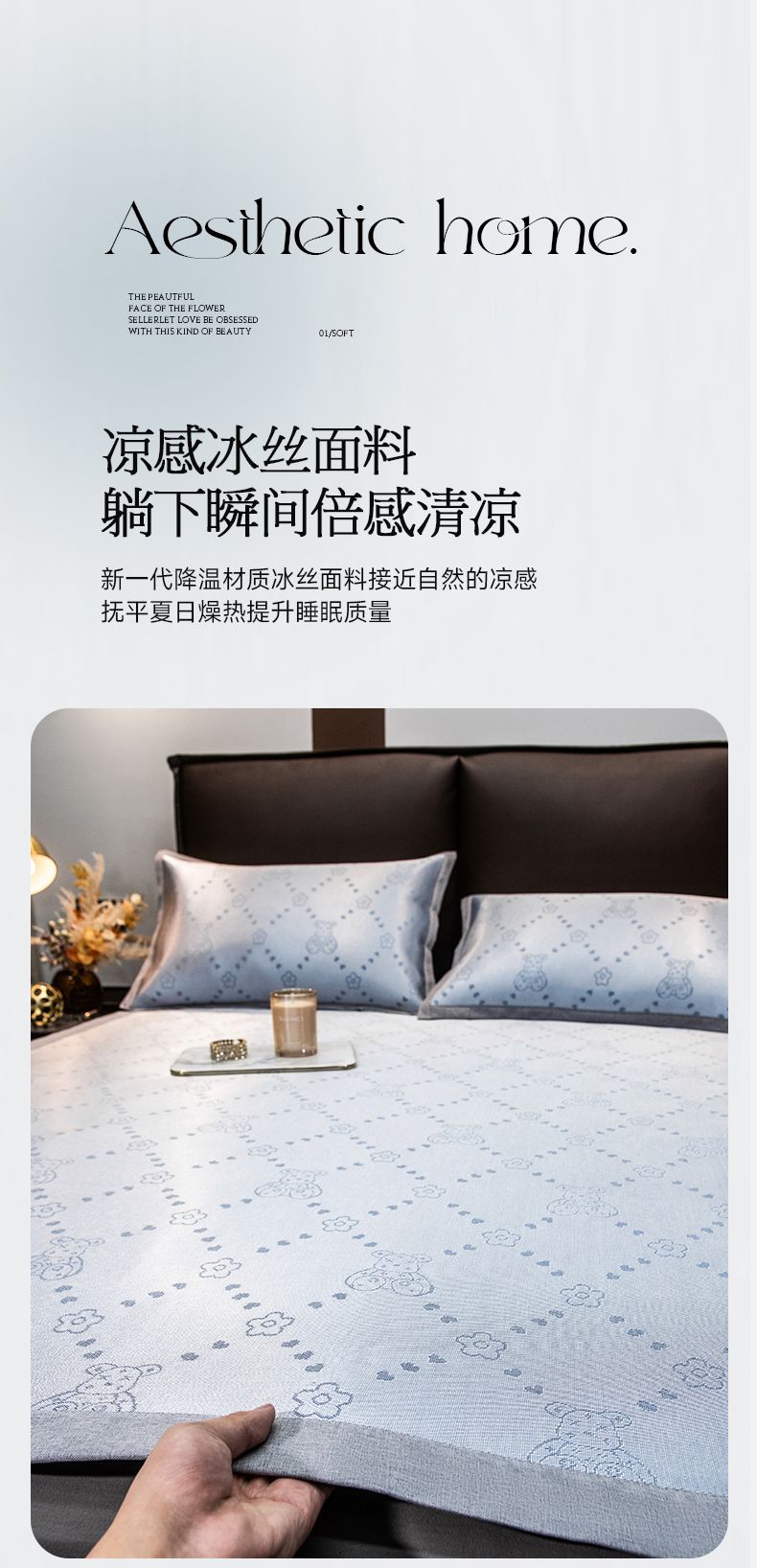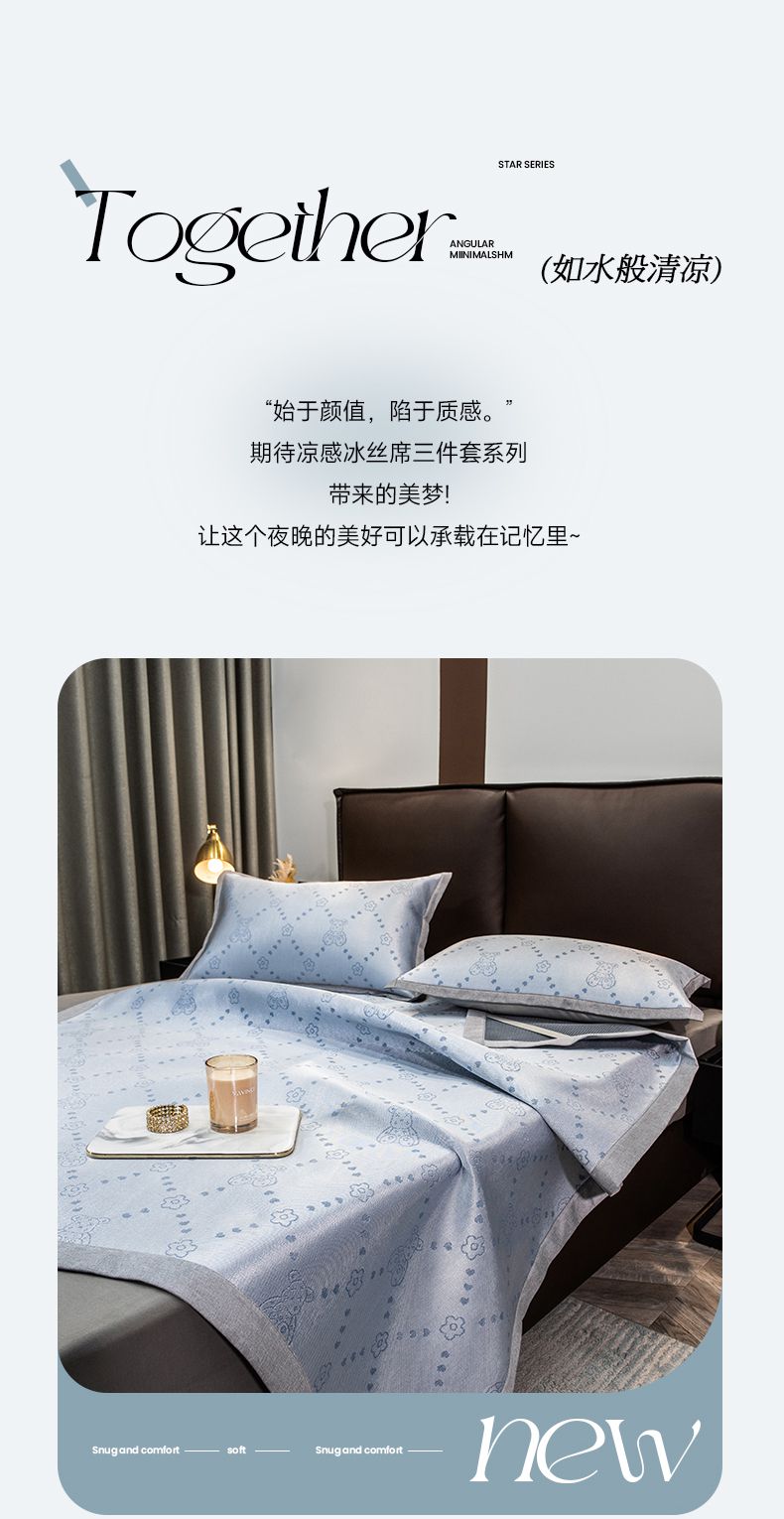 (总)摩妮卡 2025新款高精密粗冰丝席床席款三件套
