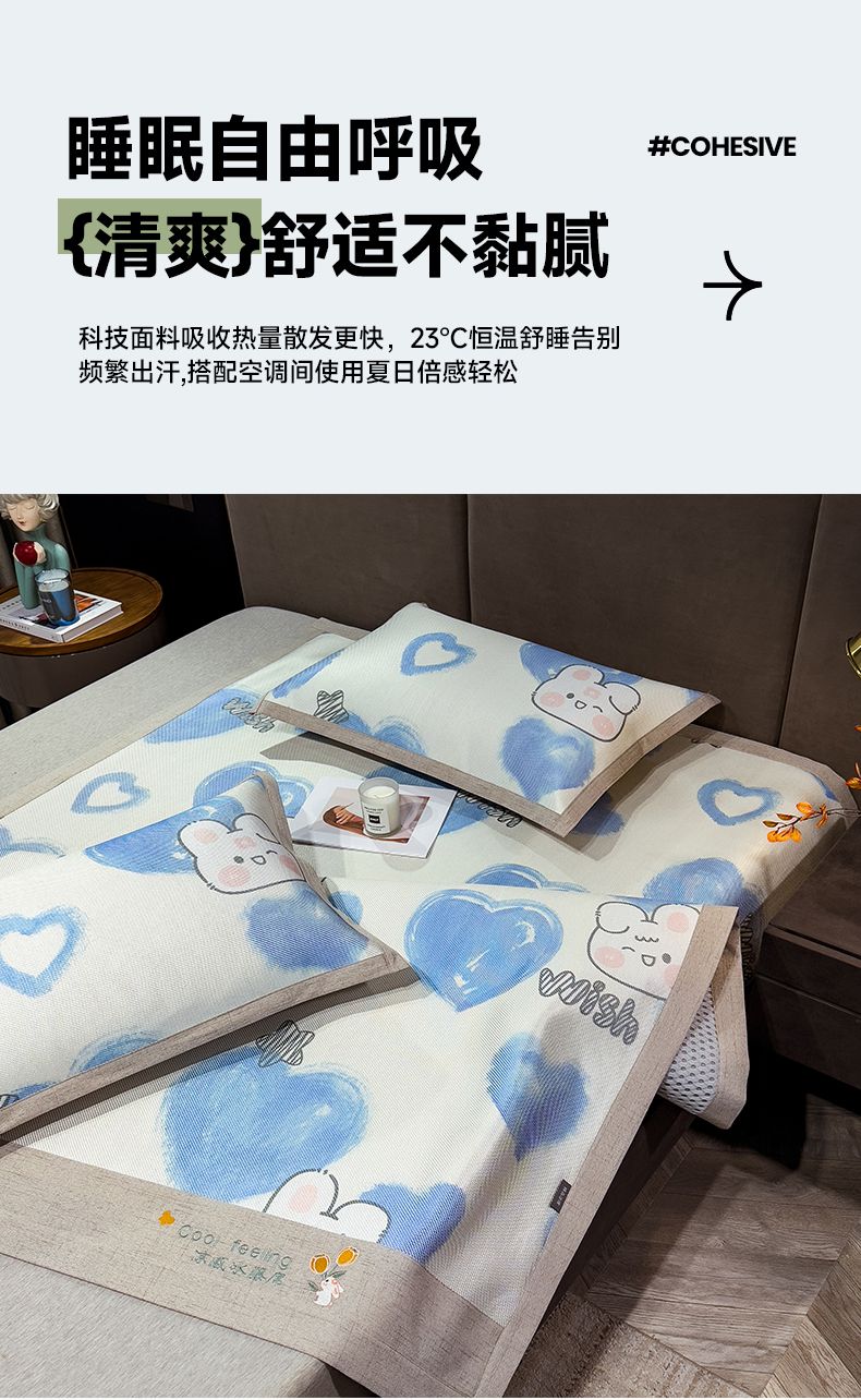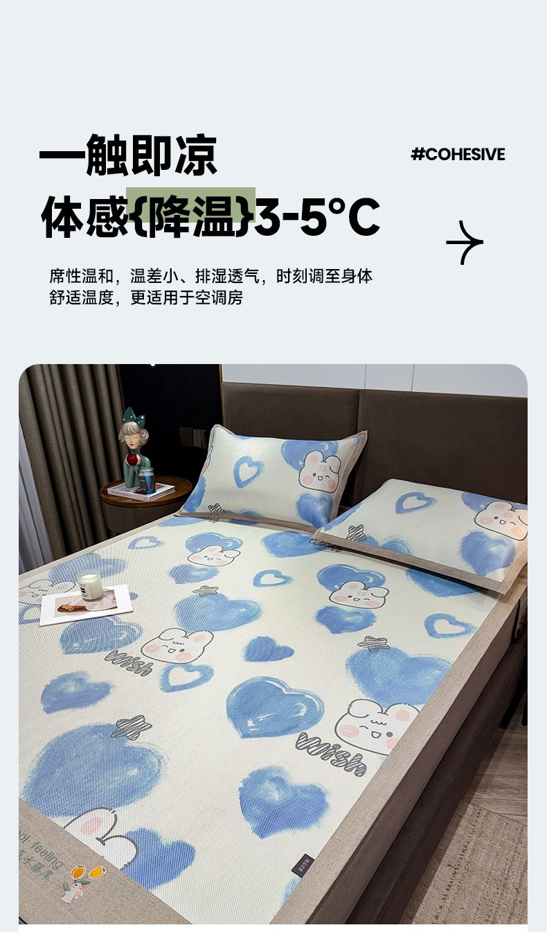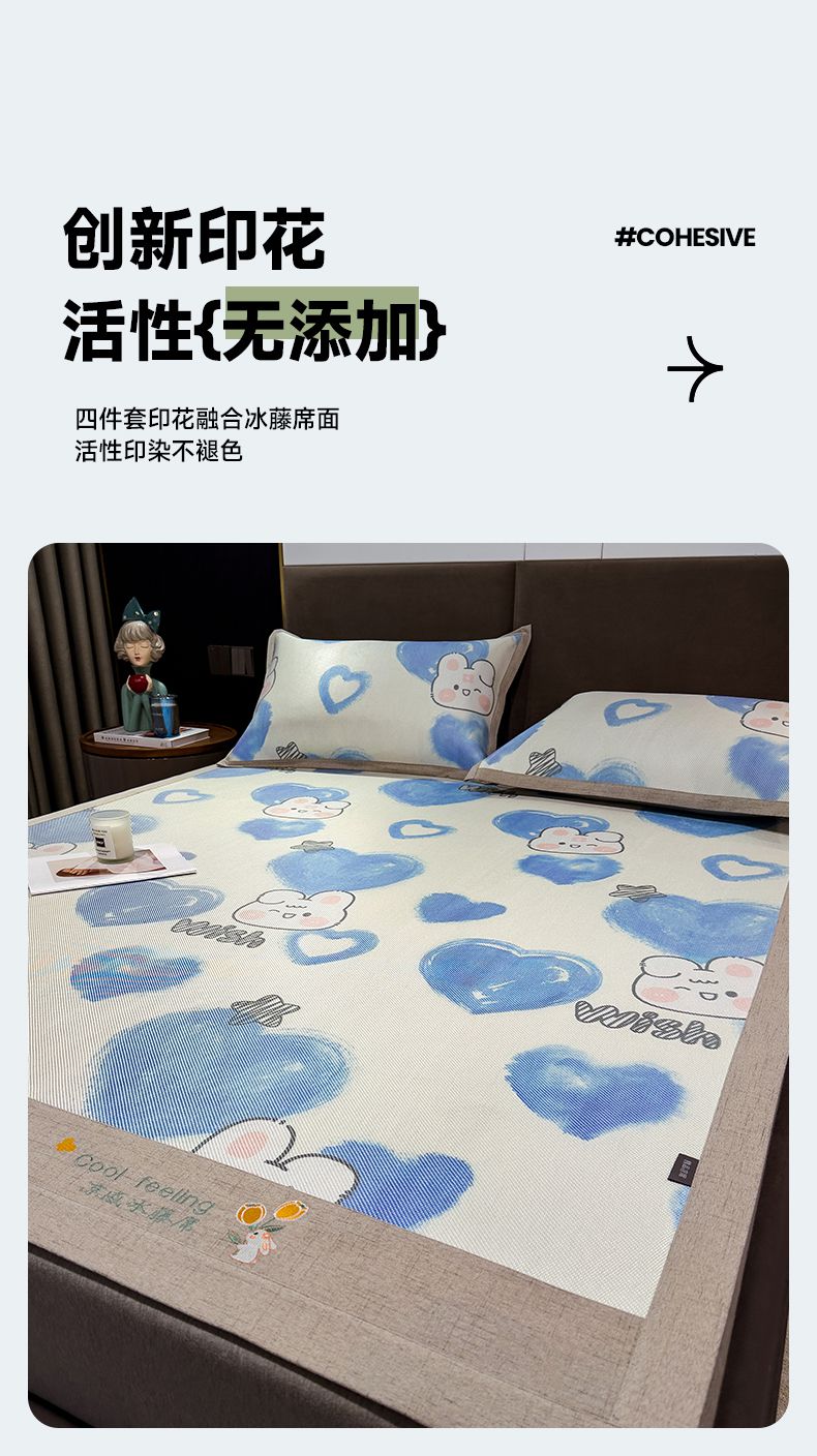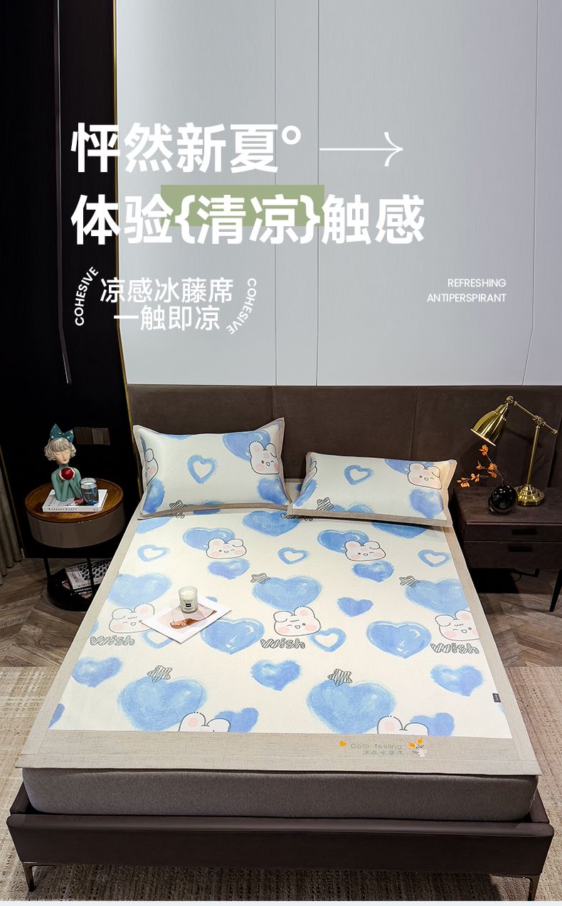 商品名称:摩妮卡 2025新款数码印花冰藤席床席款三件套 小甜心